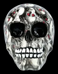 Außerordentlich detailreich und wie ein richtiges Urzeit-Fossil ist der kleine Drachen-Schädel aus handbemaltem Kunststein (Polyresin) gefertigt. Der kleine Drachen-Totenschädel von Alchemy England ist 2 cm hoch, 2,5 cm breit und 5,5 cm tief.