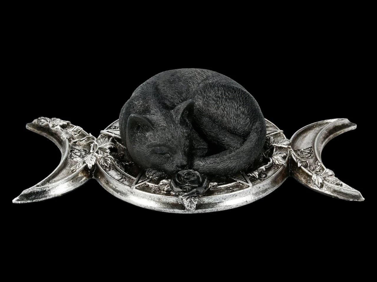 Genau in die Mitte eines edlen silberfarbenen Dreifach-Mondes hat sich die kleine schwarze Hexenkatze friedlich zum Schlafen hingelegt. Diese niedliche Wicca Katze aus der The Vault Collection von Alchemy ist sehr detailreich aus liebevoll handbemaltem Kunststein (Polyresin) gefertigt. Die niedliche Katzenfigur Witches Familiar ist 5 cm hoch, 20 cm breit und 11,5 cm tief. Am liebsten steht sie da, wo sie auch sofort gesehen wird und ist auch das perfekte Geschenk für jeden Hexen- oder auch Katzenhaushalt.
