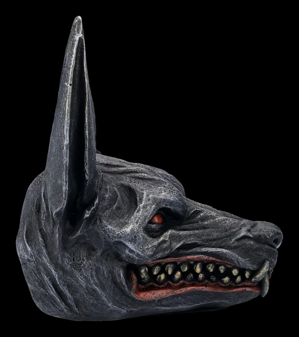 So kennt man den altägyptischen Gott der Totenriten und Mumifizierung, Anubis, nicht. Bei den meisten gefundenen Darstellungen ist nicht zu erkennen, dass er eigentlich auch das Böse symbolisiert, denn er führt die Seelen in die Unterwelt. Obwohl er nicht im eigentlichen kultischen Sinne verehrt wurde, ist Anubis doch ein äußerst wichtiger Bestandteil der ägyptischen Mythologie. Etwas erschreckend, aber außerordentlich faszinierend ist das Aussehen dieser Dekofigur des Gottes Anubis aus handbemaltem Kunststein (Polyresin), denn er scheint direkt aus der Unterwelt zu kommen. Mit der Höhe von 18,5 cm, der Breite von 14,5 cm und der Tiefe von 17 cm ist er ein durchaus ungewöhnliches Geschenk für alle, die sich für die ägyptische Mythologie interessieren.