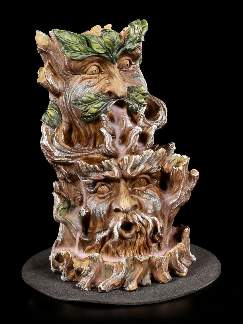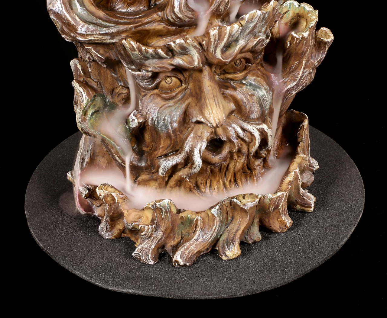Wie ein mystischer Wald wird dieser tolle handbemalte Kunststein Backflow Räucherkegel vom Rauch eingehüllt. Der Rauch fließt wie ein Wasserfall aus dem Baumgesicht und wirkt auf den Betrachter fast hypnotisierend.