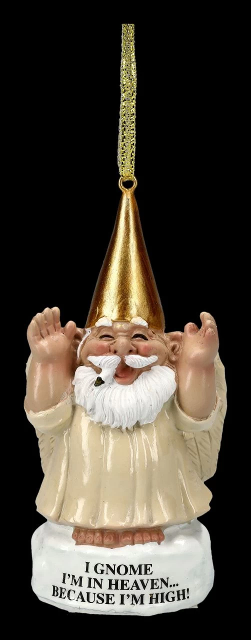Hoppala – also dieser Christbaumschmuck ist eindeutig nicht jugendfrei…. Denn was steht übersetzt auf der Wolke geschrieben, auf der der fröhlich grinsende Gartenzwerg-Engel steht: ‚Ich als Gartenzwerg bin im Himmel, denn ich bin high’… Eine Ähnlichkeit zum Weihnachtsmann lässt sich zwar nicht verleugnen, aber dass Gartenzwerge auch auf einem Weihnachtsbaum auftauchen. und dann gleich mit Engelsflügeln und als Kiffer??? Der lustige Gartenzwerg-Engel als Christbaumschmuck wurde aus handbemaltem Kunststein (Polyresin) gefertigt und ist 10,5 cm hoch, 4,5 cm breit und 4,5 cm tief. Natürlich ist er auch als Geschenkanhänger für den einen oder anderen perfekt geeignet.