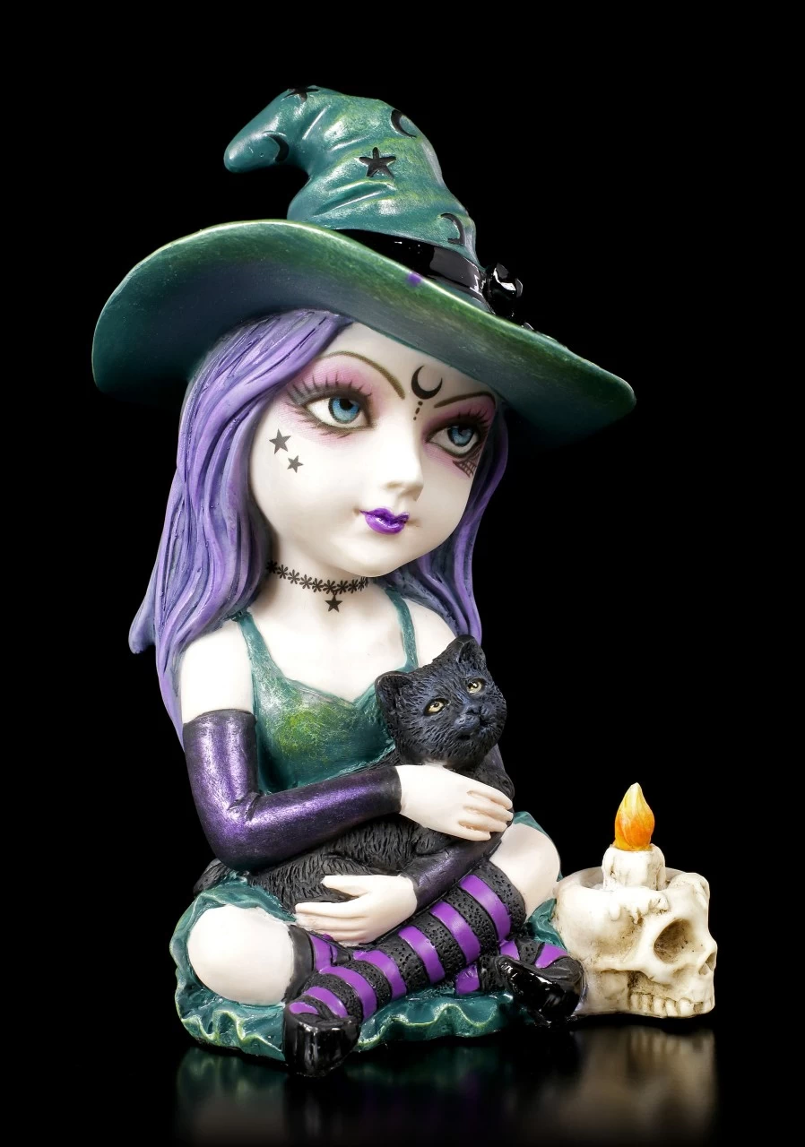 Die kleine Hexe Figur aus dem Haus Veronese gehört zu den Cosplay Kids aus der Studio Collection. Die handbemalte Kunststein (Polyresin) Figur Witching Hour macht ihrem Namen alle Ehre. Die schwarze Hexenkatze und der Totenschädel als Kerzenhalter dürfen natürlich nicht fehlen.