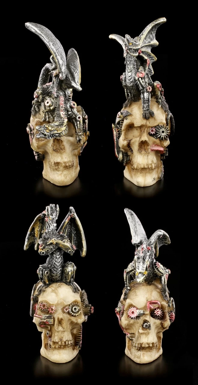 Steampunk Drachenfiguren auf Totenköpfen als Set