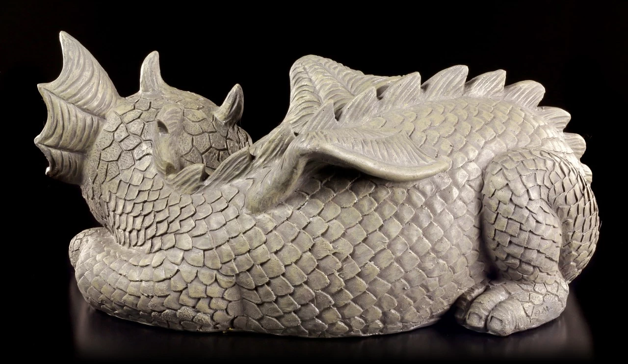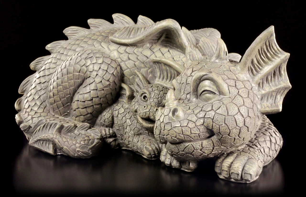 Die liebevolle Mutter ruht sich erschöpft aus. Ihr Junges ist aber gar nicht müde und will die ganze Zeit spielen. Diese wunderschöne Drachenfamilie ist aus handbemaltem Kunststein (Polyresin) ist doch eine richtig niedliche Deko.