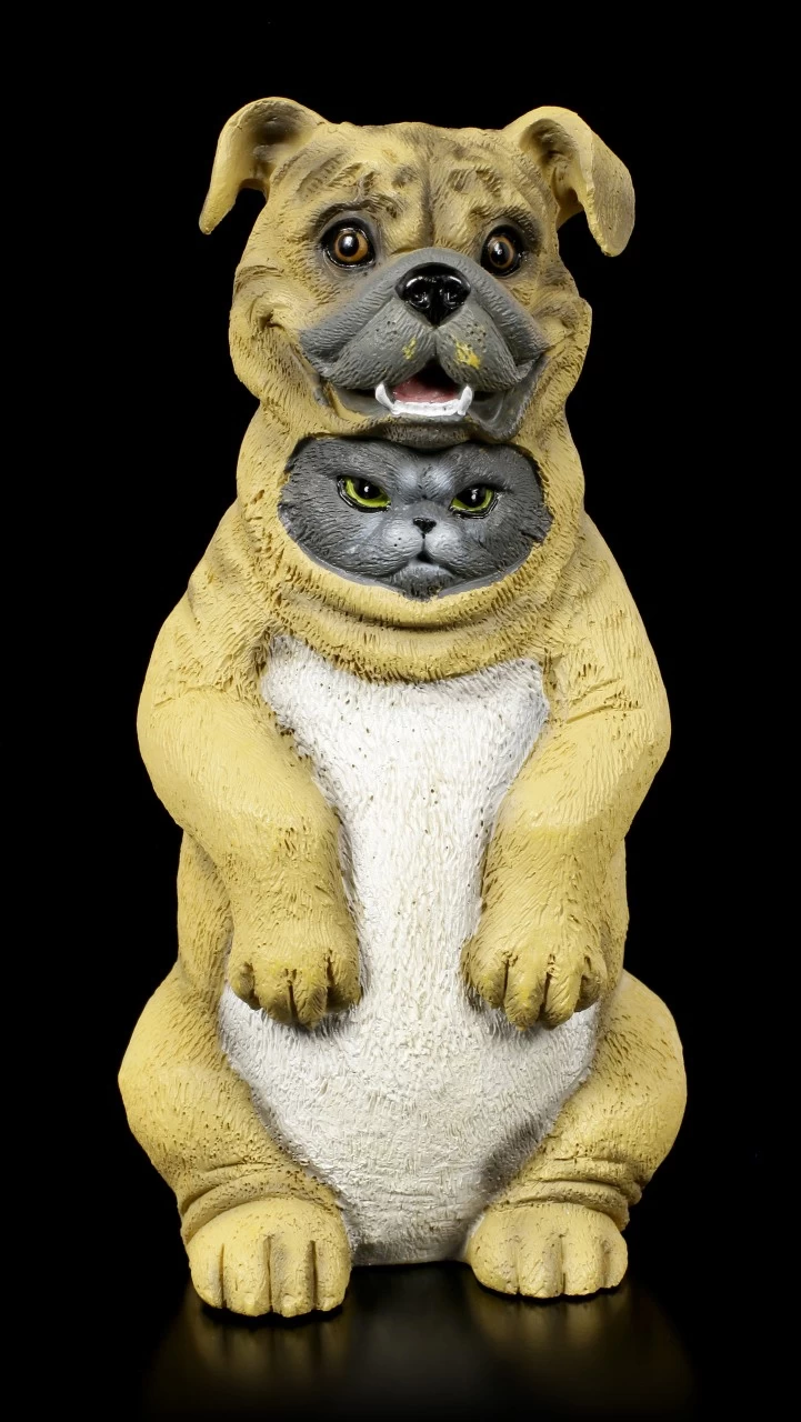 Katzen sind ja bekanntlich schon immer etwas eigen – aber dieses Exemplar ist ganz besonders klug. Damit das ewige Gejage durch die Nachbarshunde aufhört, hat sich die Mietzekatze ein Hundekostüm gebastelt. Die süße Dupers Figur ist aus handbemaltem Kunststein (Polyresin) und ein sehr witziges Geschenk.