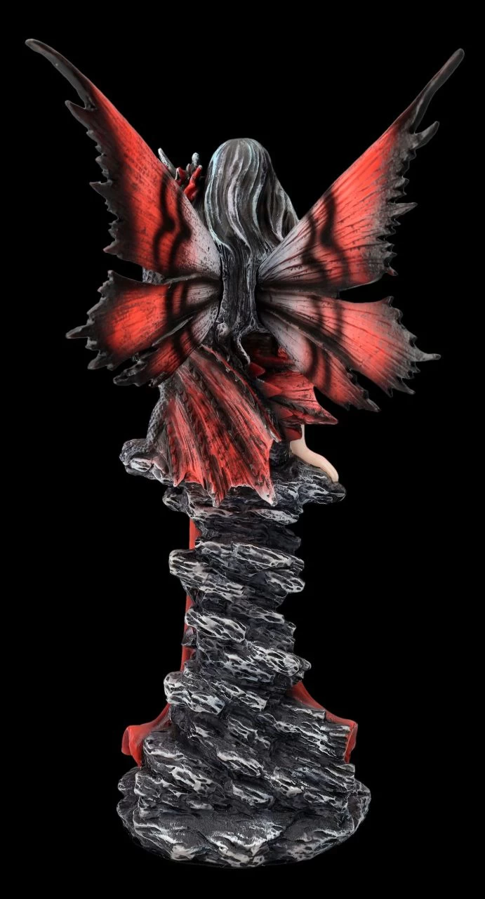Auch im fernen Land der Elfen, Feen und Drachen gibt es immer wieder Elfen, die gerne ganz besonders auffallen. Alandriel gehört definitiv dazu. In ihrem feuerroten Kleid steht sie stolz und unnahbar vor einem großen Felsen. Ihr Drache, der schon von ganz klein an bei ihr ist, hat sich zärtlich um sie gewunden und wird nun von ihr liebevoll am Hals gekrault. Die hinreißende Elfen-Figur ist detailreich aus Kunststein (Polyresin) gefertigt und von Hand bemalt. Sie ist 31 cm hoch,17 cm breit und 18,5 cm tief und ihre zum Kleid passenden Flügel sind zum Stecken. Alandriel im leuchtend roten Kleid mit ihrem Drachen ist ein perfektes Geschenk für Elfen-Freunde und eine tolle Ergänzung einer Elfen-Sammlung.