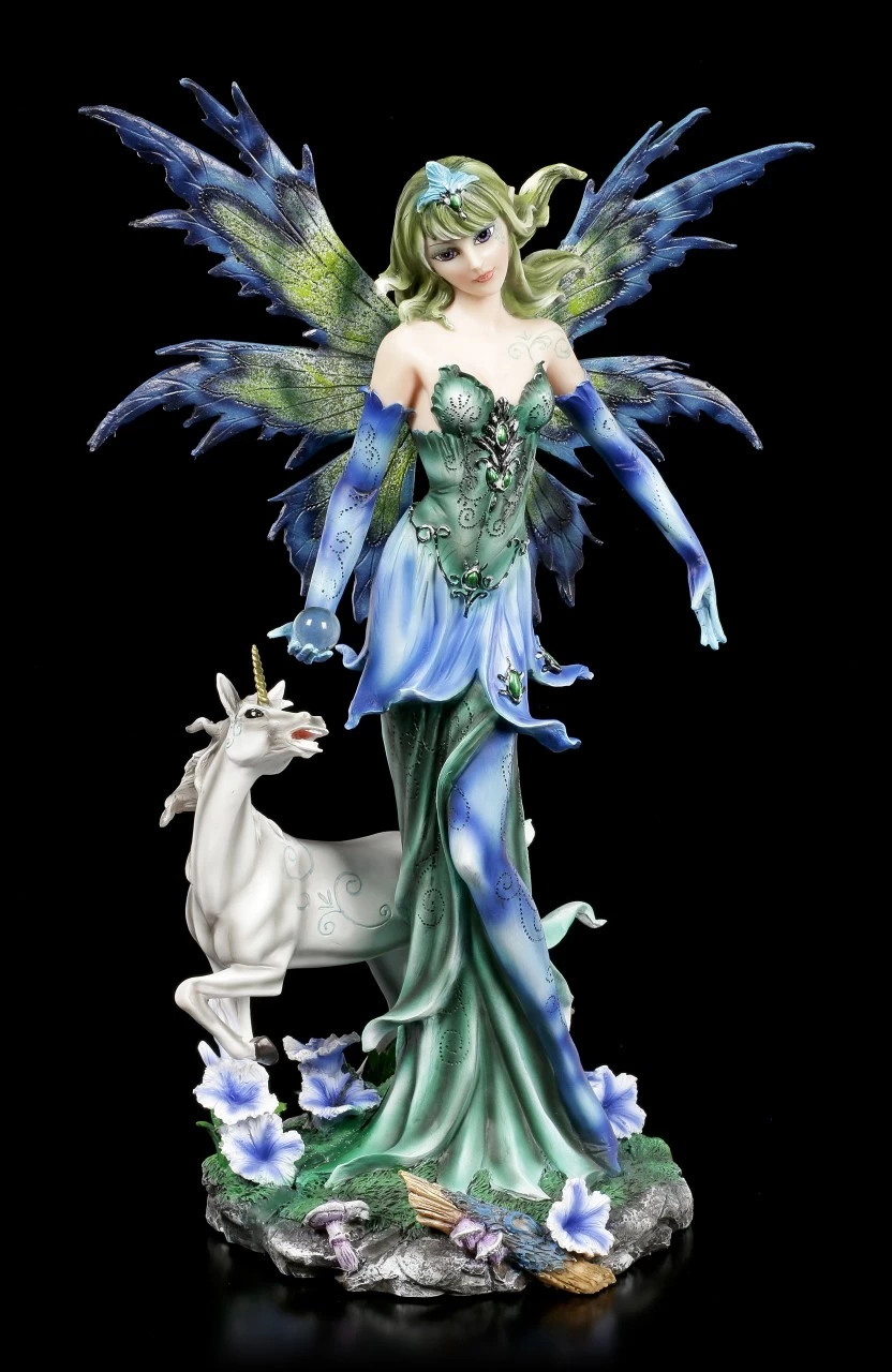 Bunte Elfenfigur mit Einhorn als Begleiter