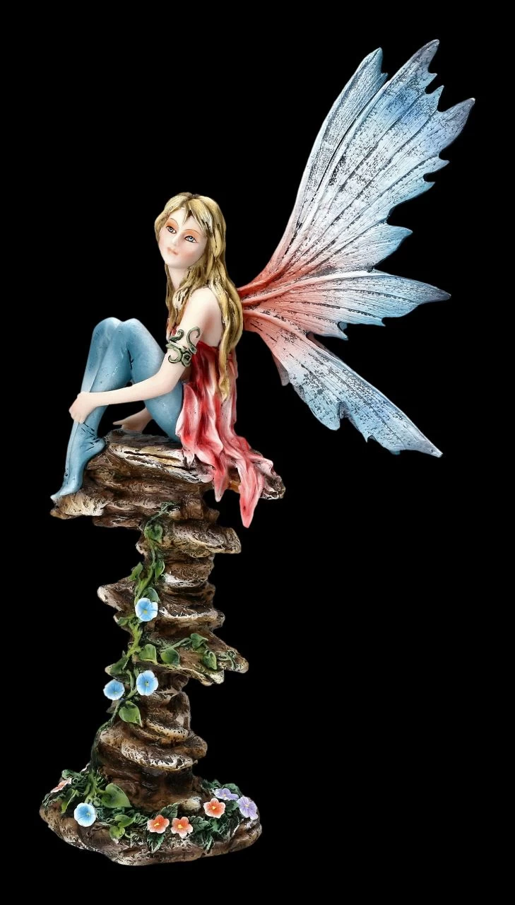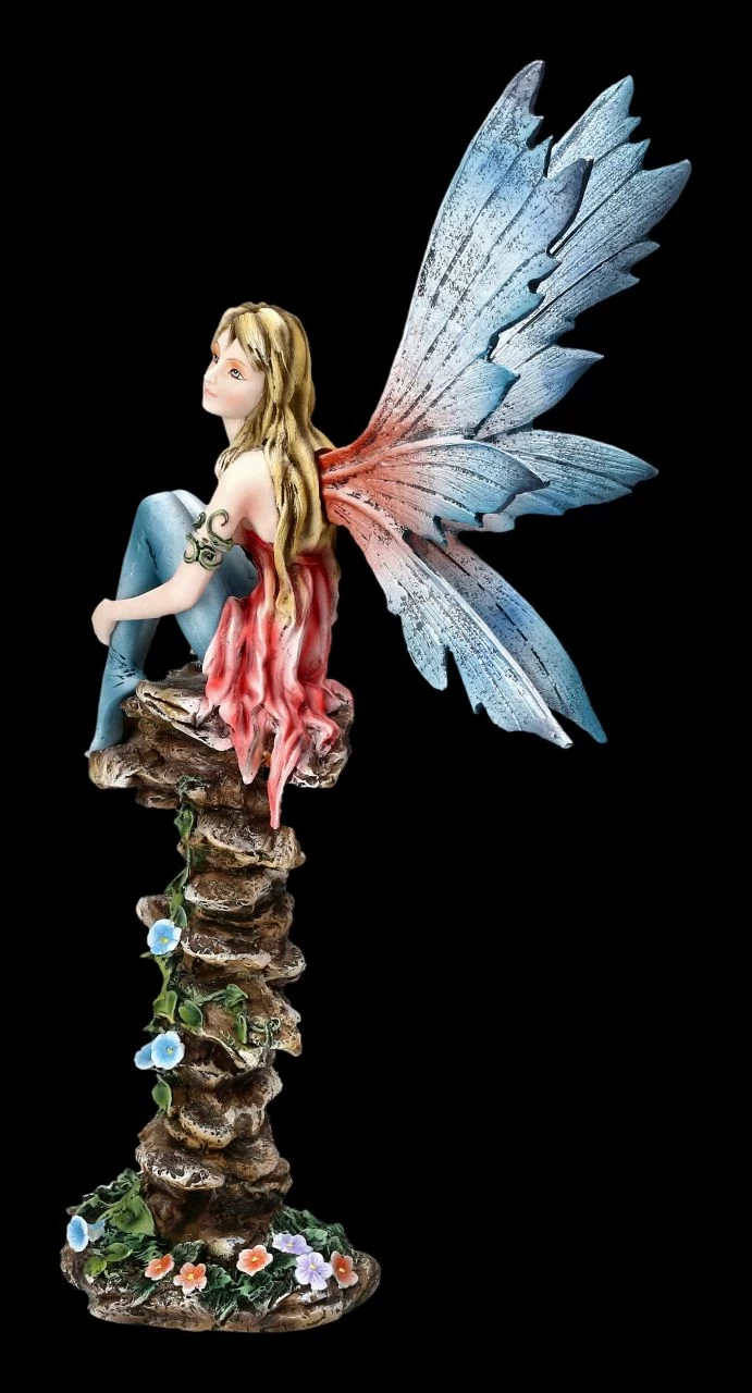 Wartet die hübsche Calista auf ihre Freundinnen die sich verspätet hatten, oder doch darauf, ob ihr Traumprinz heute den Weg nimmt, der an ihrem Felsen vorbei führt? Ihr verträumter Blick verrät sie jedoch. Die niedliche Elfe Calista sitzt in ihrem bunten Kleidchen und den blauen Strümpfen hoch oben auf dem Felsen, sie scheint aber nicht zu frieren. Eine absolut niedliche Elfen-Figur, die liebevoll aus handbemaltem Kunststein gefertigt wurde. Die filigranen Flügel der 31,5 cm hohen, 5,5 cm breiten und 15,5 cm tiefen Elfen-Figur sind zum Stecken.