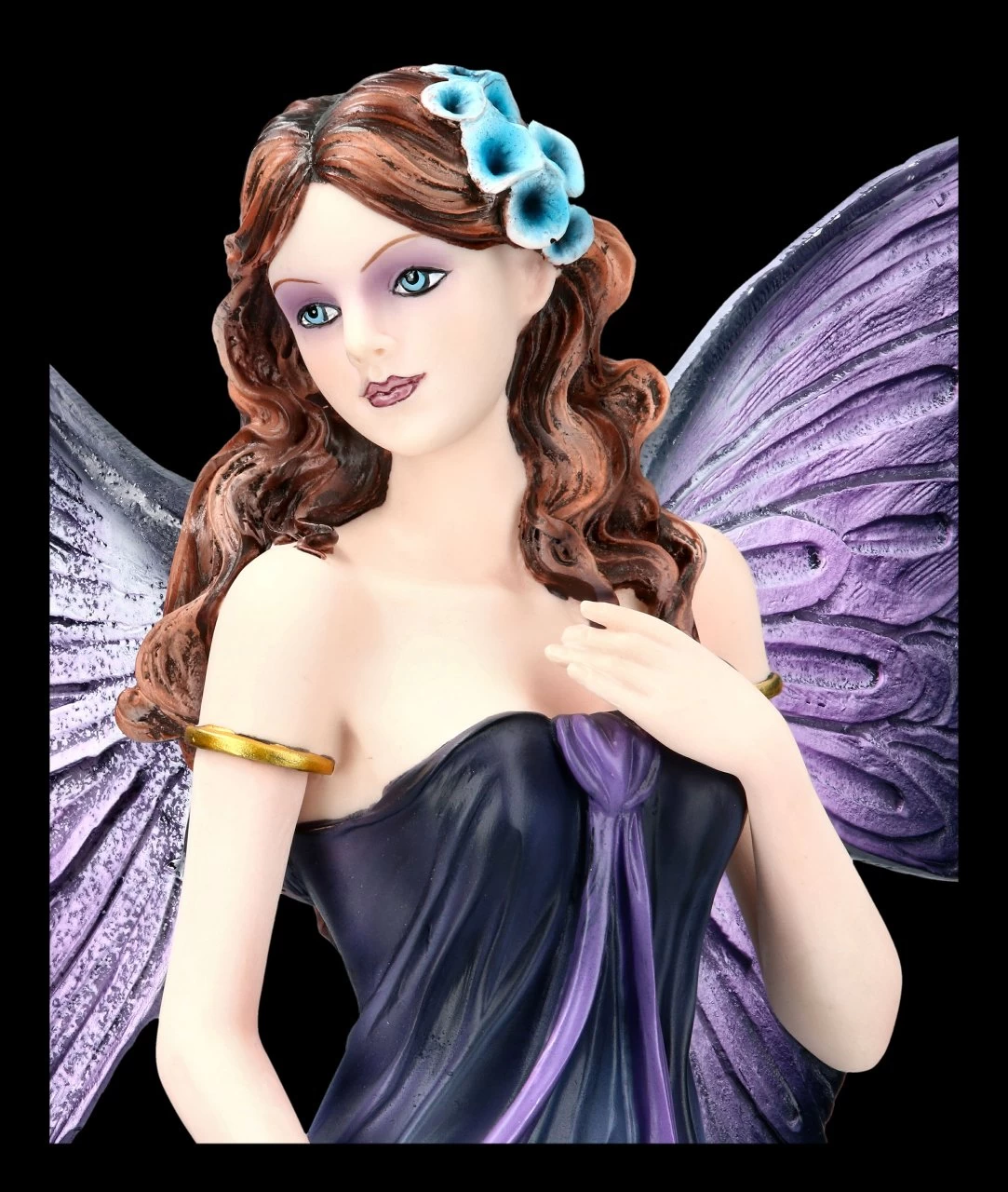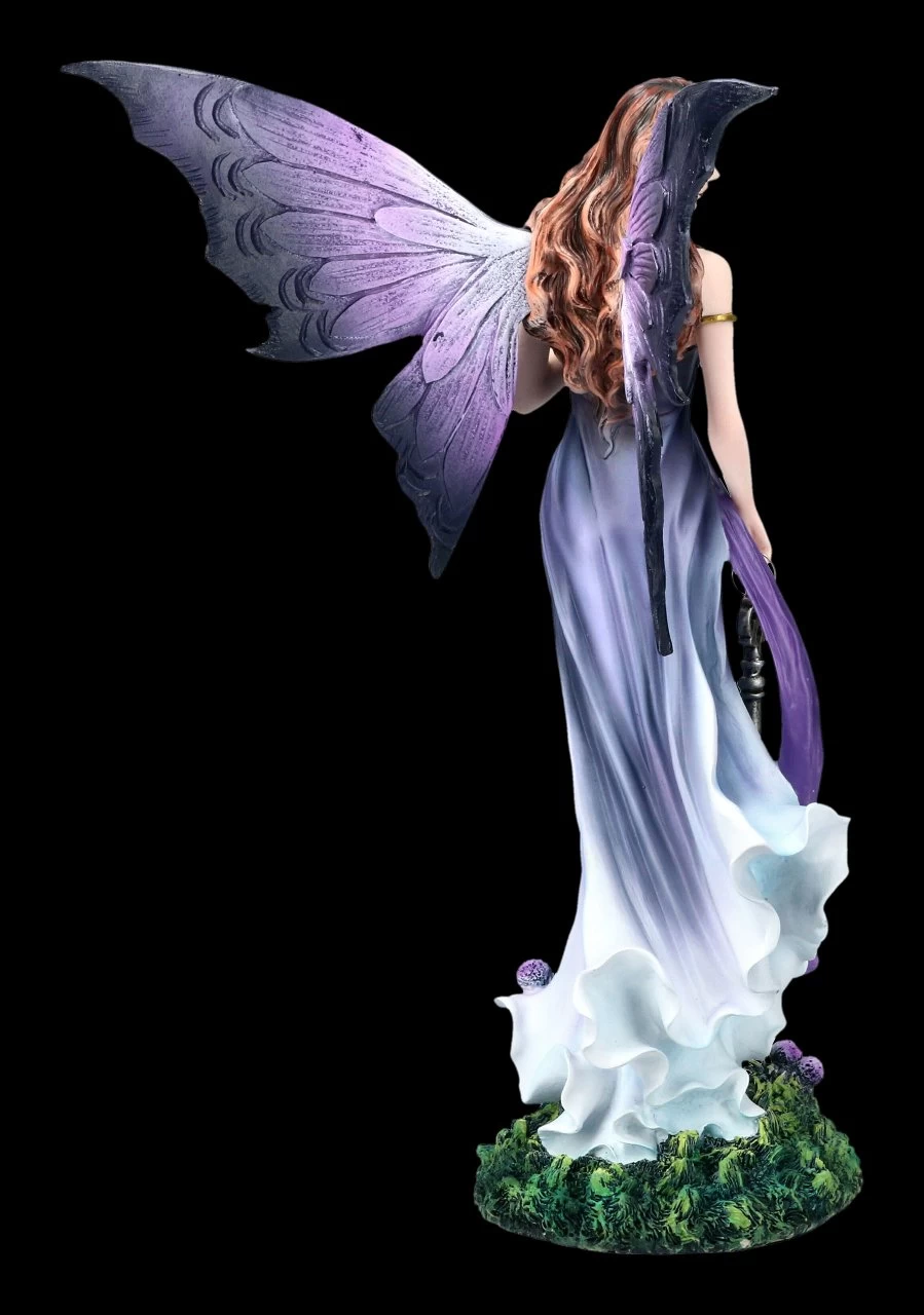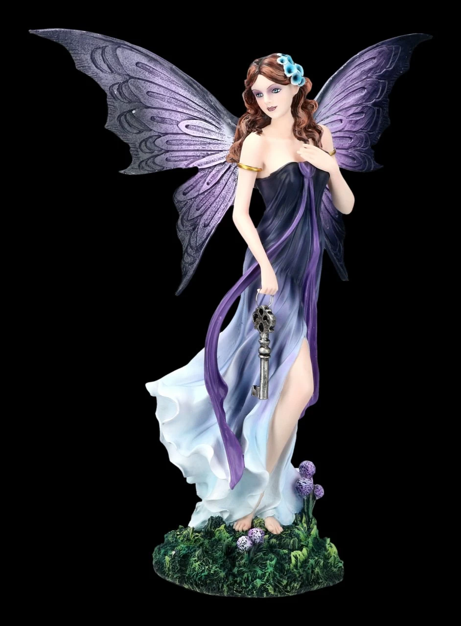 Komm mit mir, denn ich kann dir alle Türen öffnen. Schließlich bin ich die Elfe Clusia mit dem magischen Schlüssel. Verführerisch in ihr langes und hoch geschlitztes violettes Kleid mit den blauen Akzenten gehüllt hat Clusia ihren linken Arm beschwörend auf ihr Herz gelegt. Die schöne handbemalte Elfe Clusia mit dem magischen Schlüssel ist detailreich aus Kunststein (Polyresin) gefertigt. Sie ist 37 cm hoch, 30 cm breit, 17 cm tief und die zarten violetten Flügel sind zum Stecken. Die wunderschöne Elfe Clusia ist ein sehr dekorativer und verführerischer Blickfang.