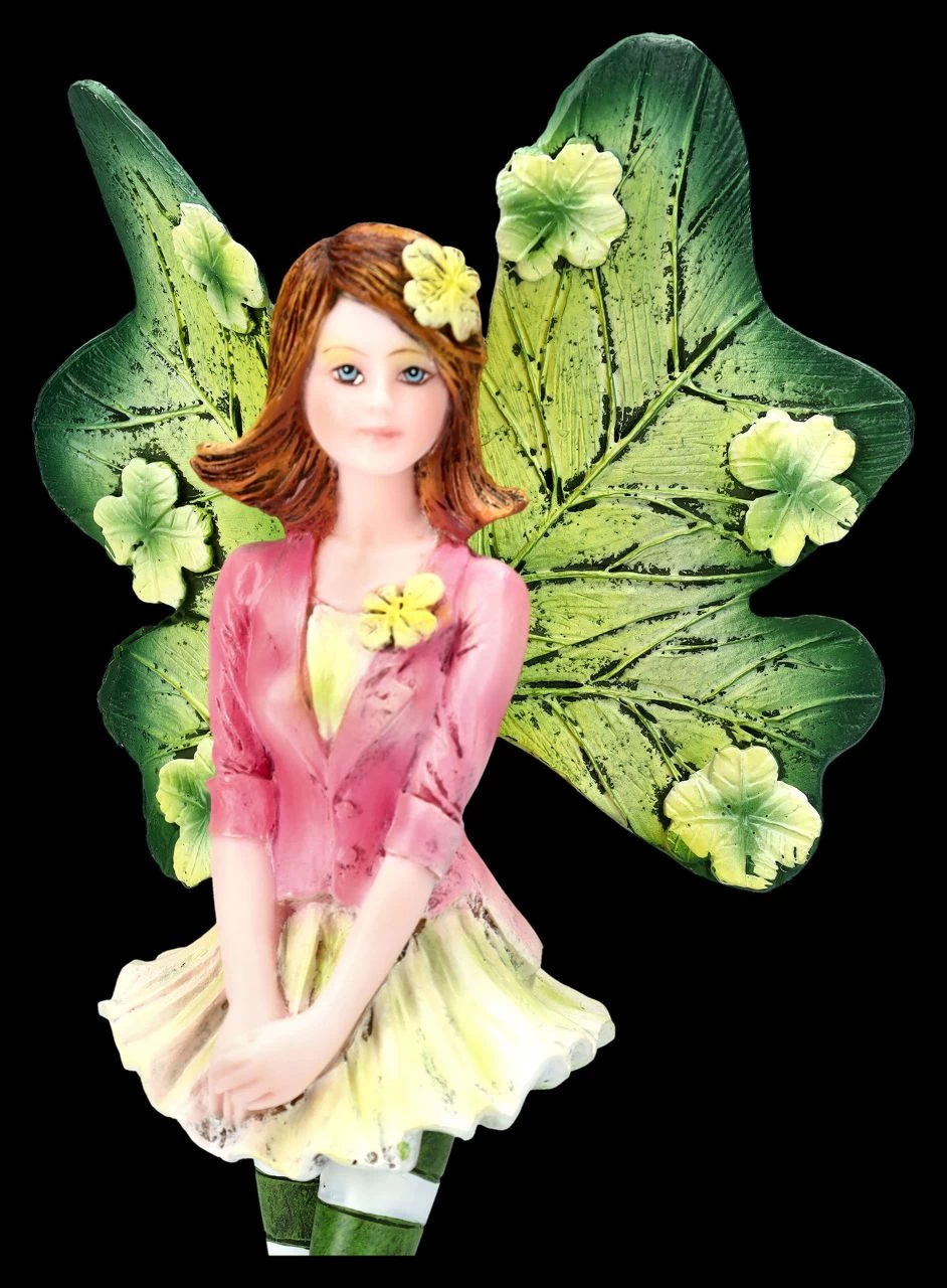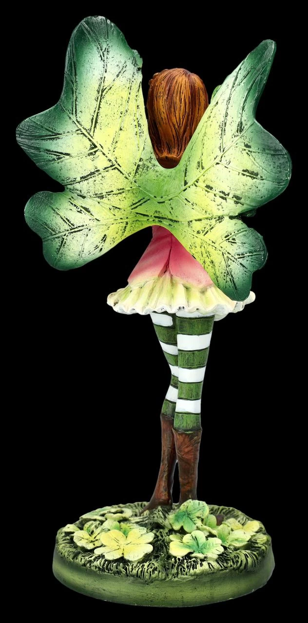 Glück ist relativ und hat für jeden eine andere Bedeutung und hat auch zahlreiche Symbole. Ein vierblättriges Kleeblatt ist aber für viele ein wichtiges Glückssymbol – und das sicher nicht nur zu Neujahr. Die Elfe Livera mit den Kleeblatt-Flügeln ist doch ein ganz reizender Glücksbote und sie schaut mit ihren grün geringelten Strümpfen und dem Blütenkleid mit rosa Jäckchen doch absolut niedlich aus. Die 19,5 cm hohe, 10 cm breite und 8 cm tiefe süße Elfenfigur ist aus liebevoll handbemaltem Kunststein (Polyresin). Ihre Flügel sind zum Stecken. Die Glücksfee Livera ist doch ein perfektes Geschenk für alle, denen Sie Glück wünschen möchten.