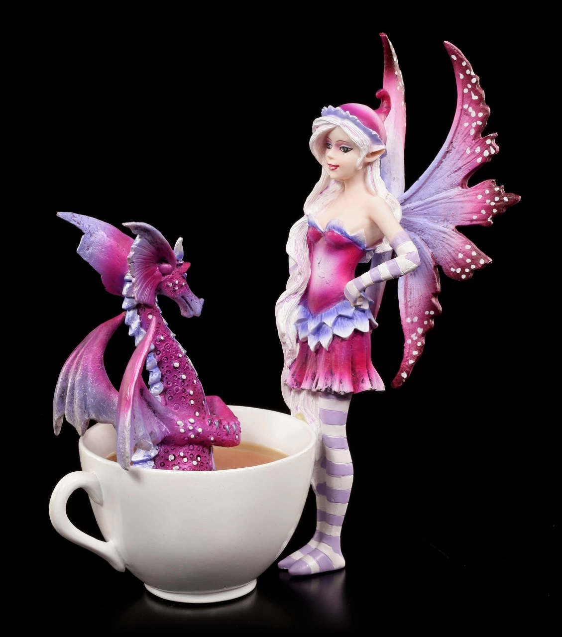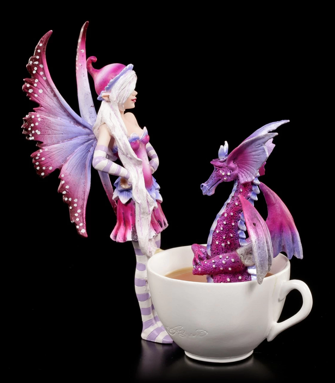 Da will einer ja gar nicht mehr aus der Tasse! Die Elfe verucht den Drachen zu überreden, aus der Tasse zu steigen. Aber der kleine Kerl weigert sich standhaft. Diese wunderbare Figurenkombination von Amy Brown ist eine Freude anzusehen.