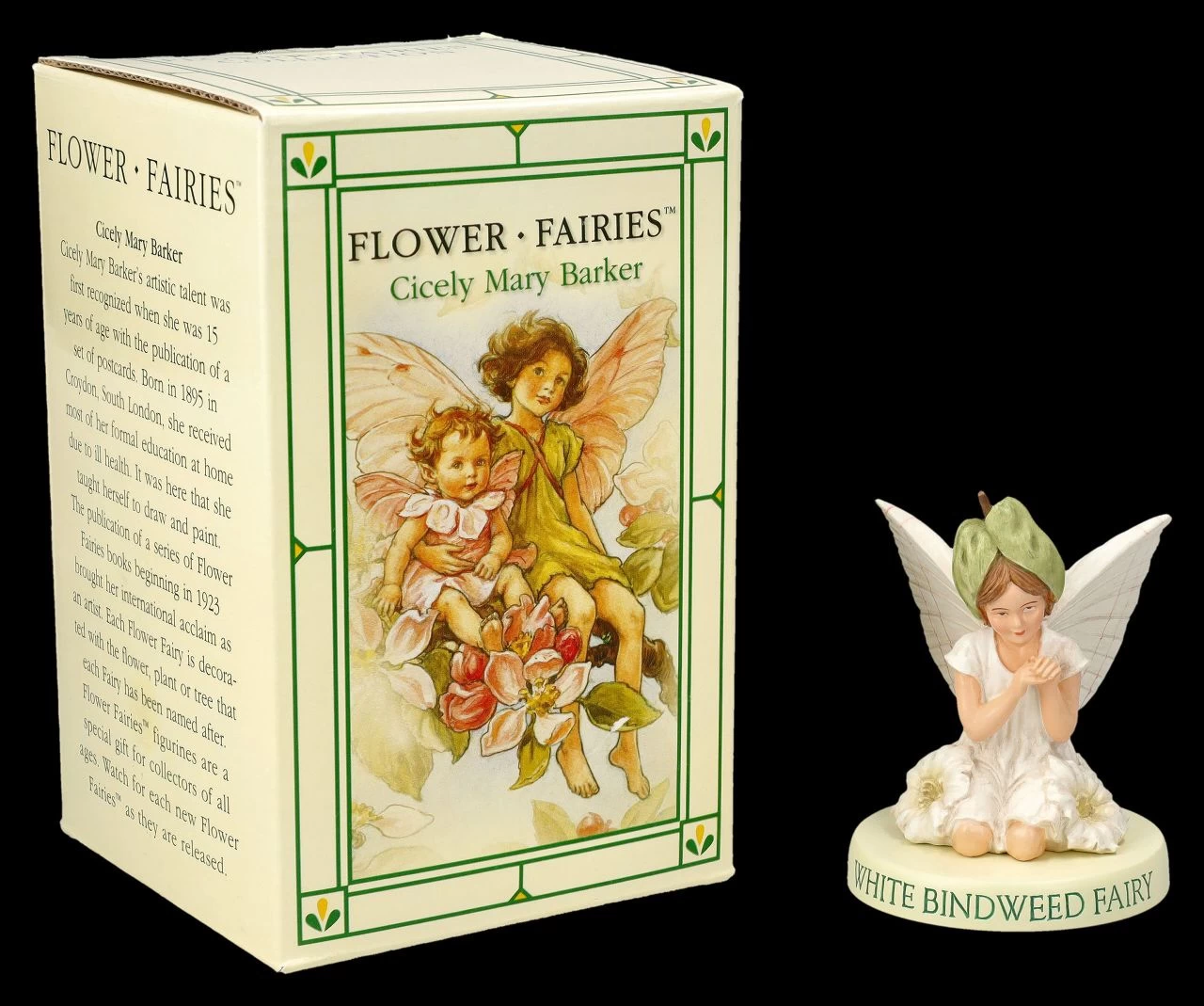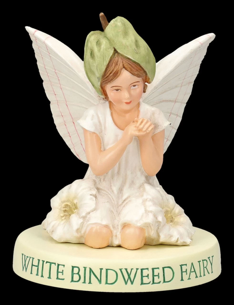 Die zarten Blüten einer Winde sind ein Wunderwerk der Natur. Und wie die zarte Blüte einer Winde kniet die kleine süße Winden Fee in ihrem weißen Kleidchen, dem Blätterhut und den zarten Flügeln und auf einem Podest mit der Bezeichnung ‚White Bindweed Fairy‘. Die niedliche Fee aus der Flower Fairies Collection von Cicely Mary Barker ist zwischen all Ihren Pflanzen sicher ein sofortiger Blickfang. Cicely Mary Barker, die 1895 geborene und 1973 gestorbene englische Illustratorin, widmete sich von Kindheit an der fantasievollen Welt der Elfen und Feen. Ihre ‚Flower Fairies‘ mit den zauberhaften Feenbildern, denen die kleinen Elfen nachempfunden sind, begeistern von Anfang an Kinder und auch Erwachsene. Für alle, die Freude an Blumen, Pflanzen und Kräutern haben, ist die 8 cm hohe, 7 cm breite und 7 cm tiefe detailreiche hübsche Winden Fee aus liebevoll handbemaltem Kunststein (Polyresin) ein perfektes Geschenk und kommt in einem Geschenkkarton. Weitere niedliche Flower Fairies finden Sammler in unserem Shop.
