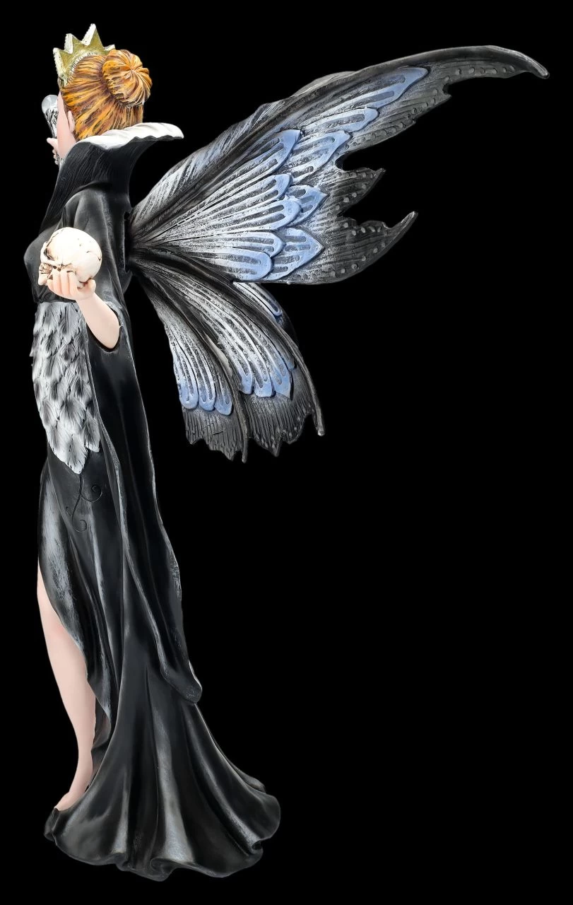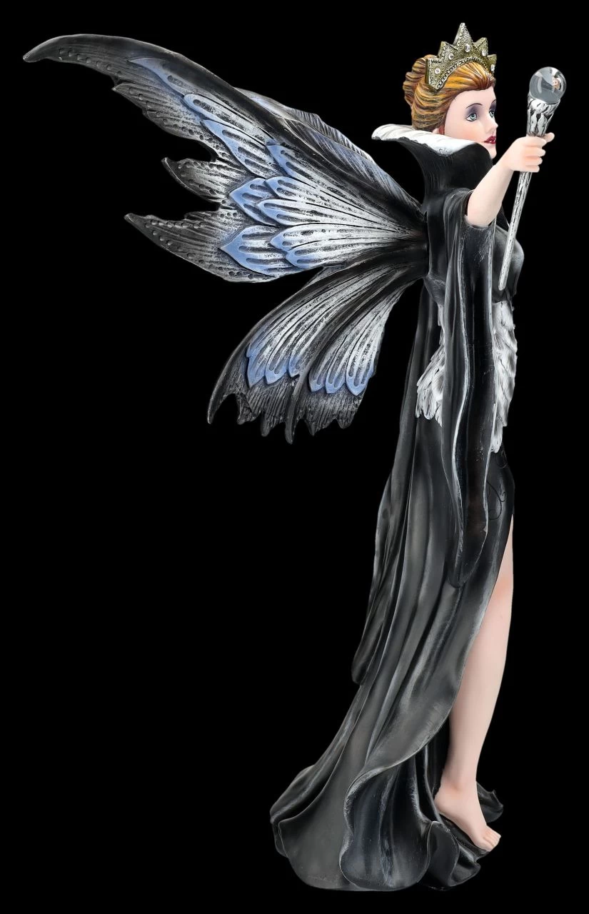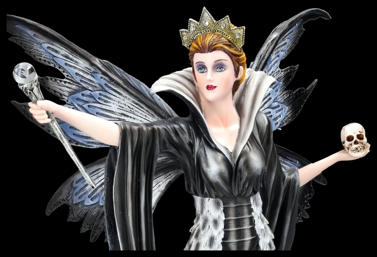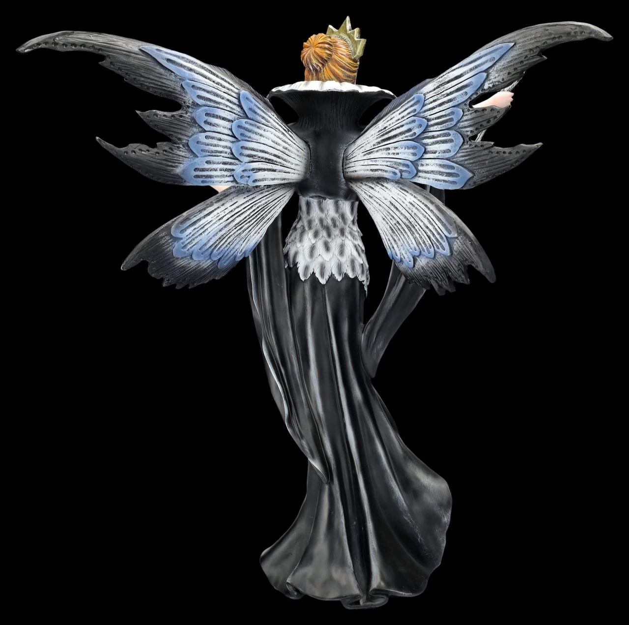 Alle Magier und Hexen werden von der Königin der Elfenwelt zur großen Konferenz geladen. Der Ruf ihrer Weisheit, aber auch ihrer Schönheit hat sich längst bis in die weit verstreuten Länder der Elfenwelt verbreitet. Und so ist es kein Wunder, dass alle eingeladenen Zauberwesen ihrem Ruf folgen. Mit ihrem Zauberstab als Zepter in der rechten Hand und einem Totenschädel in der linken betritt die Königin der Elfenwelt die Bühne. In ihrem langen, seidig fließenden schwarzen Kleid und mit der Tiara in ihrem hochgesteckten rötlichen Haar beeindruckt sie jeden, der sie sieht. Die wunderschöne und beeindruckende dunkle Figur der Königin mit Zepter und Schädel ist detailreich aus Kunststein (Polyresin) gefertigt und sorgfältig von Hand bemalt. Die herrliche Elfenfigur ist 46 cm hoch, 40 cm breit und 30 cm tief und ihre großen Flügel sind zum Stecken. Diese mystische und wunderschöne Elfenkönigin verdient einen Platz, an dem sie sofort entdeckt und bewundert werden kann. Für Sammler und alle, die von der magischen Welt der Elfen begeistert sind, ist diese schöne mystische Königin ein perfektes Geschenk.