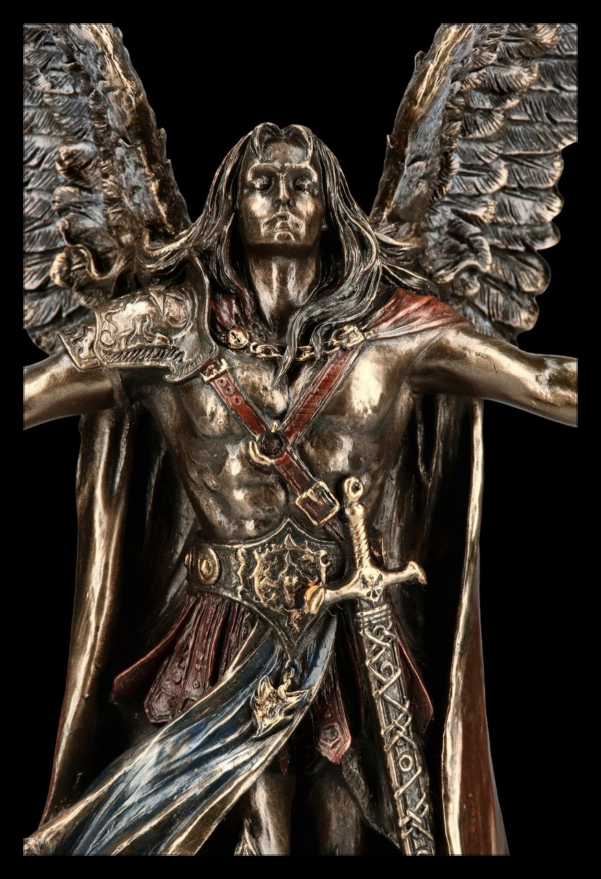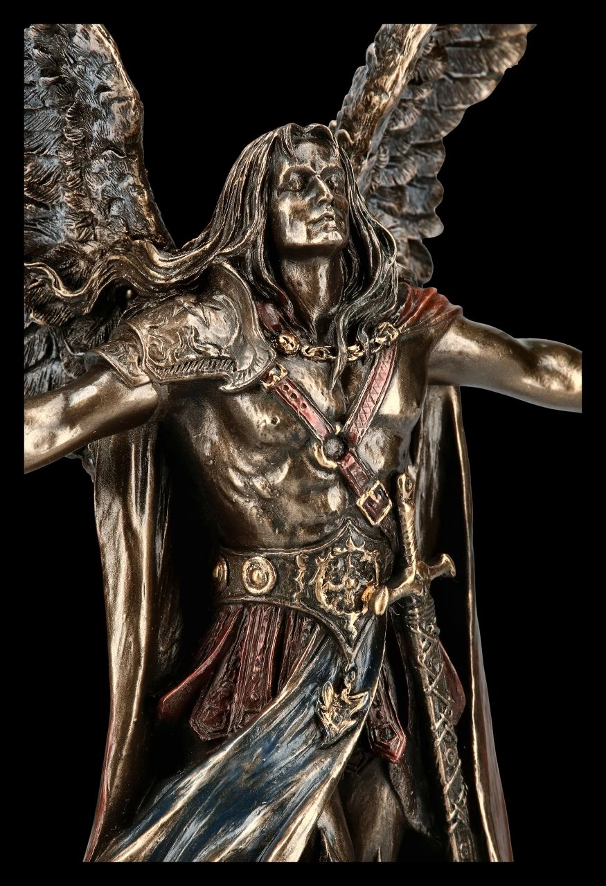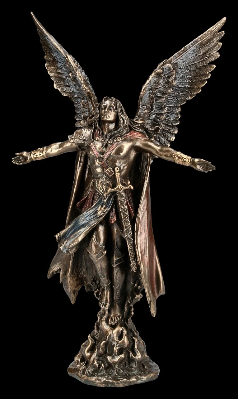 Sieht der Engel nicht majestätisch aus? Mit ausgebreiteten Flügeln steigt er in den Himmel auf und wird uns von dort beschützen. Die erhabene Engelstatue wurde von Veronese geschaffen. Durch die stilvolle Bronzierung und anschließende Colorierung schimmert sie sanft im Licht. Ein wahrer Hingucker.