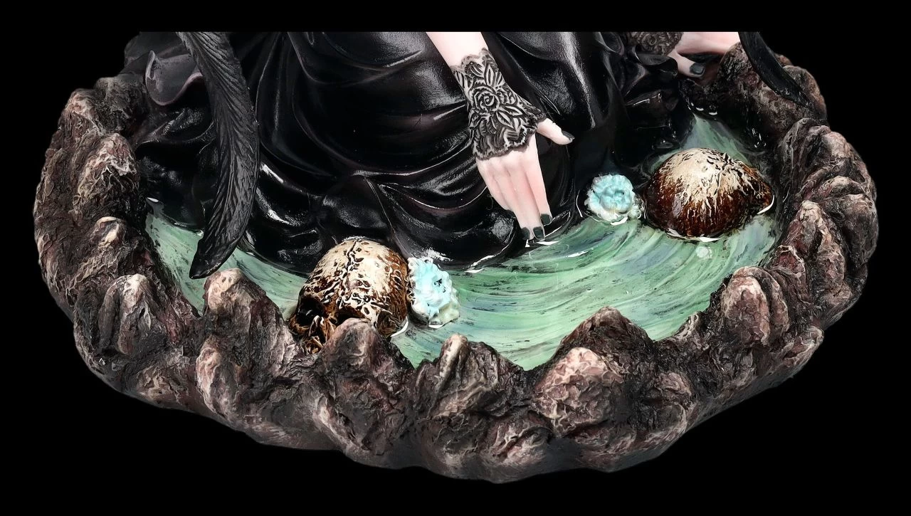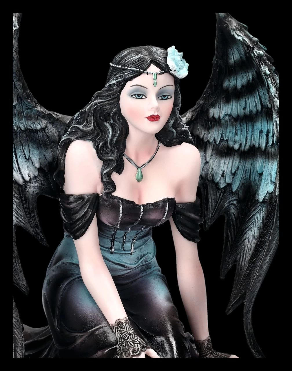 Wen möchte dieser wunderschöne dunkle Engel in Versuchung führen? Immortal Sin, also ‚unsterbliche Sünde‘ heißt dieser zauberhafte Engel in dem nachtblau/schwarzen Kleid und mit den ebenfalls nachtblau und schwarzen prächtigen Flügeln. Mit der rechten Hand scheint der schöne Engel nachdenklich den See zu seinen Füßen aufzuwühlen. Die herrliche Engel-Figur im Gothic Look wurde detailreich aus hochwertigen Kunststein (Polyresin) gefertigt und von Hand bemalt. Die riesigen Flügel sind zum Stecken. Der 23,5 cm hohe, 21,5 cm breite und 20 cm tiefe dunkle Engel ist einfach wundervoll anzusehen und damit auch ein perfektes Geschenk für jeden Sammler.