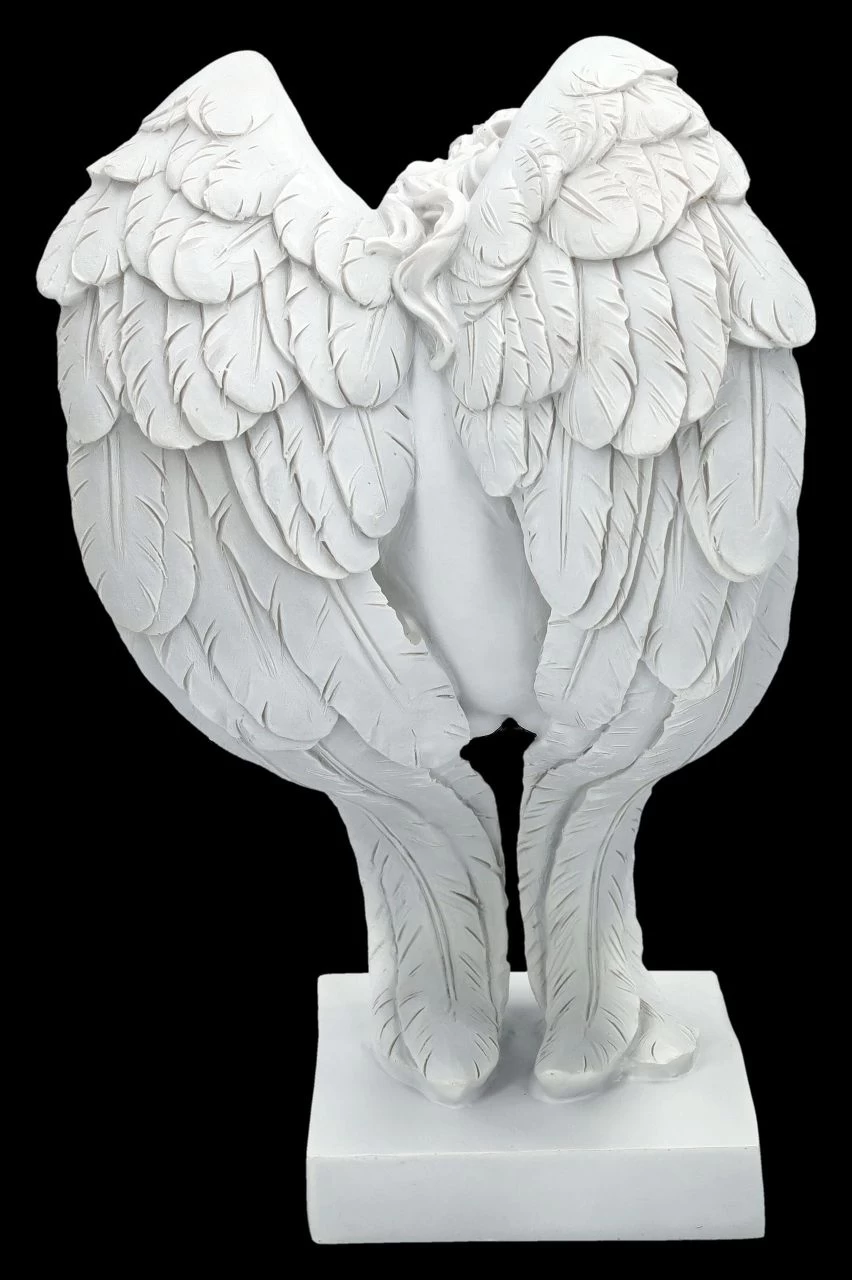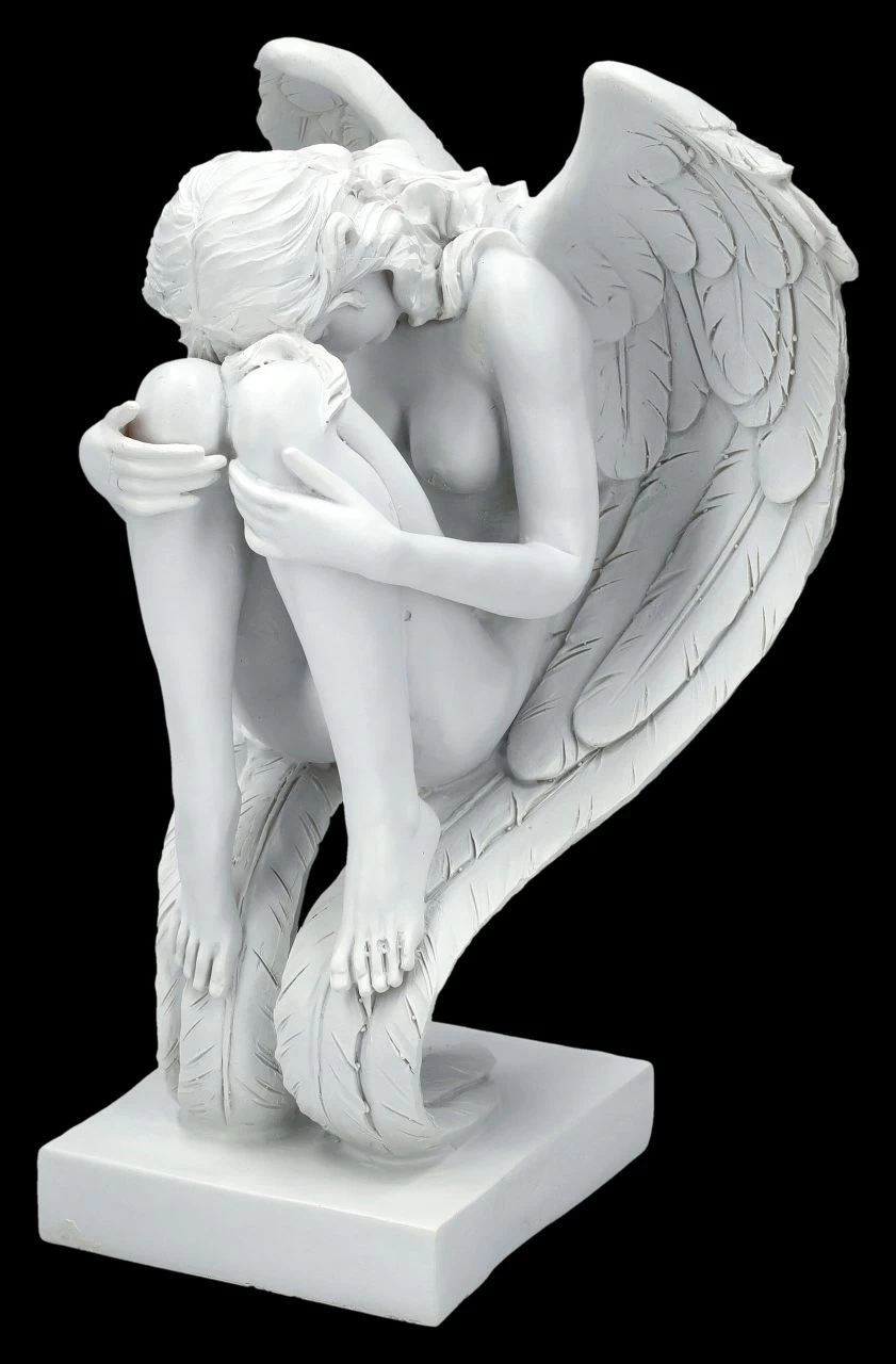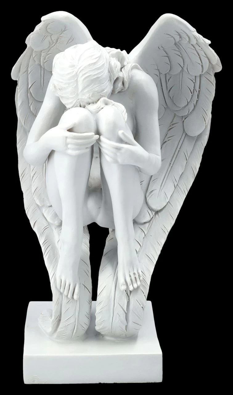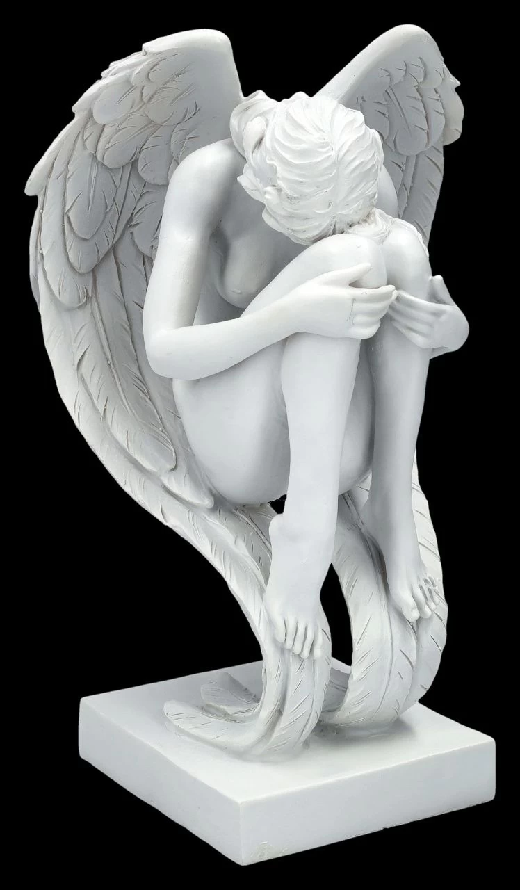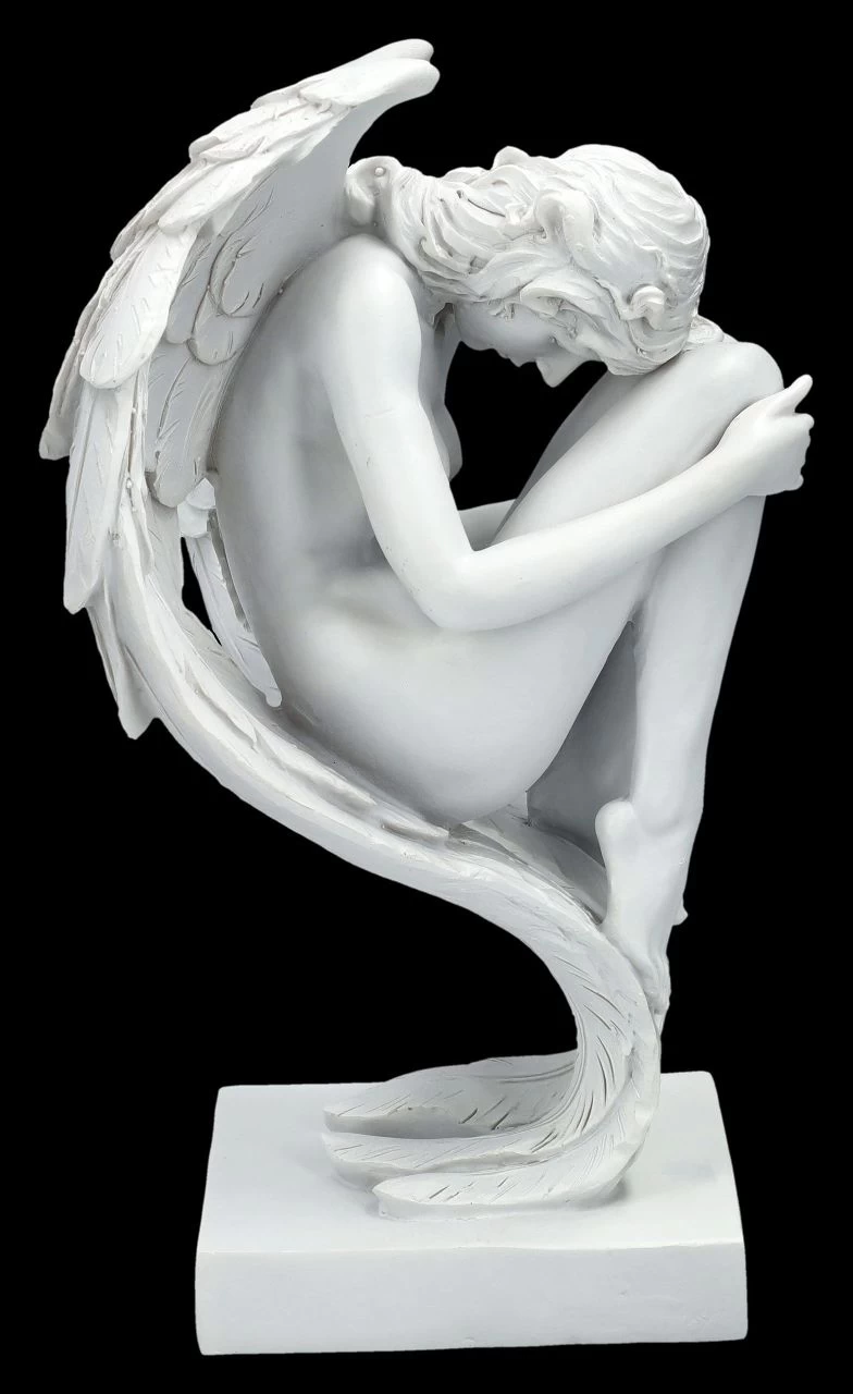 Die Beine angezogen und den Kopf nachdenklich auf die Knie gelegt, hat sich der wunderschöne Engel auf seine großen Flügel gesetzt. Die Flügel sind zu einem Bogen geformt und bieten so dem schönen nackten Engel den perfekten Schutz und geben ihm Halt. Die trauernde Engel-Figur wurde sehr zurückhaltend und schön aus weiß handbemaltem Kunststein (Poolyresin) gefertigt. Angels Contemplation ist 27,5 cm hoch, 16,5 cm breit und 14 cm tief. Jeder hat seinen persönlichen Engel und manchmal möchte man ihn auch sehen und so wird dieser nachdenkliche Engel sicher auch als Geschenk jedem Freude bereiten.