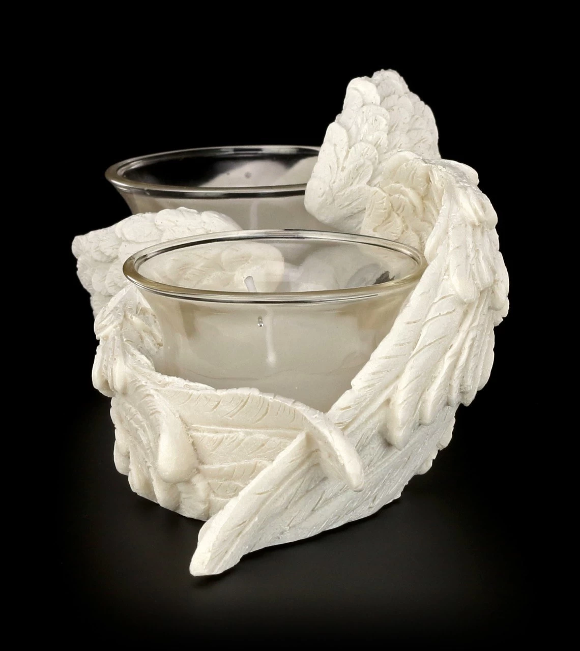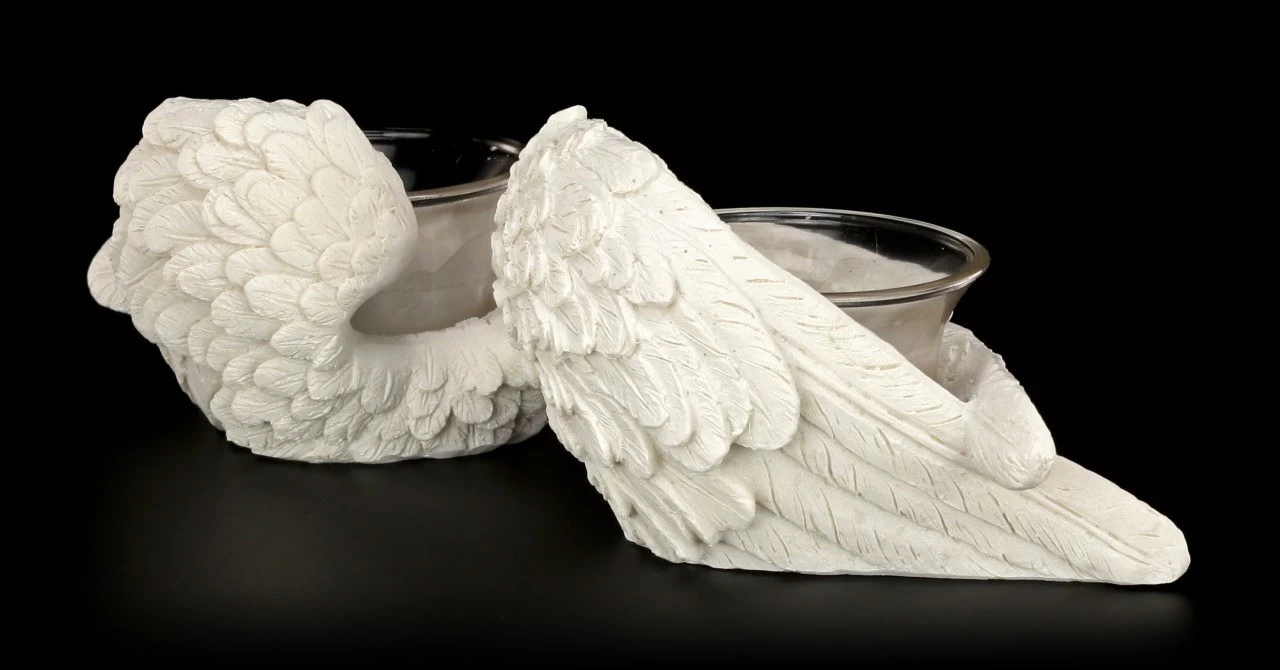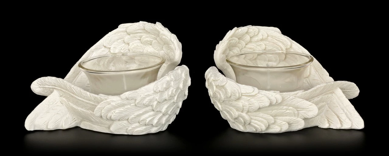 Bereiten Sie einem lieben Mensch eine Freude und verschenken Sie diese schönen Engelsflügel als Teelichthalter. Sie verbreiten ein angenehmes Licht und verschönern jede Tischdekoration.