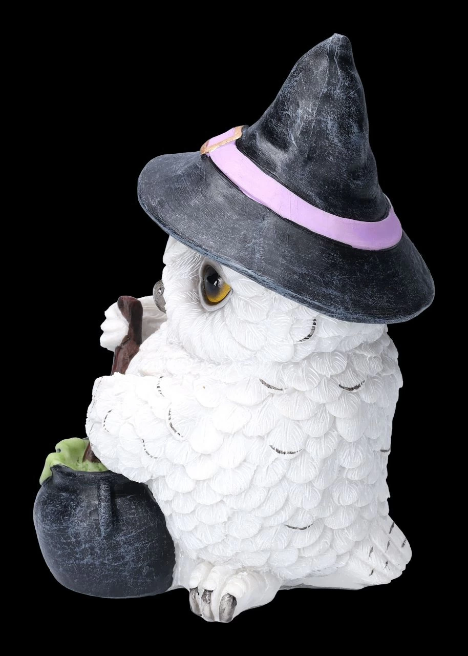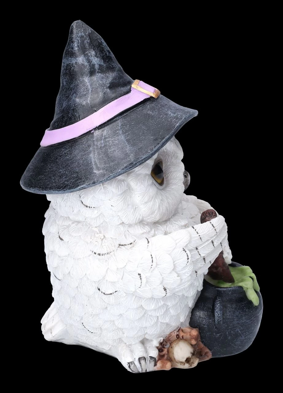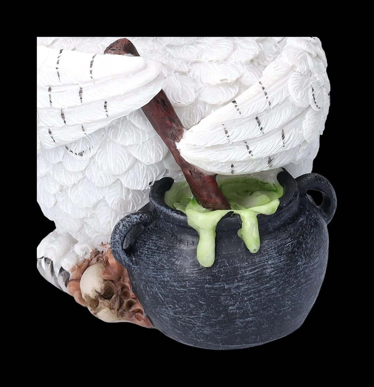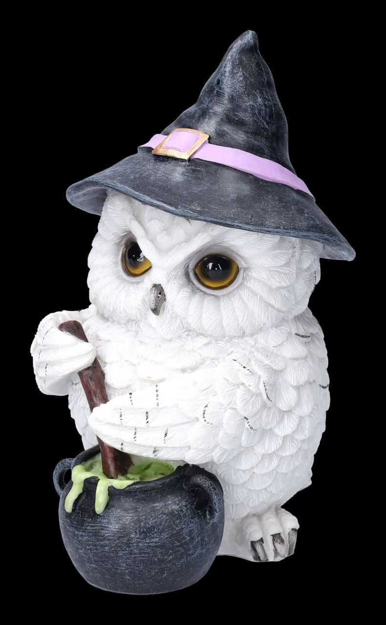 Jetzt stellt sich heraus, was die Eule bei ihrer Hexe gelernt hat… Äußerst konzentriert rührt die weiße Eule in der grünen Flüssigkeit im Hexenkessel. Was da wohl dabei herauskommt? Die unternehmungslustige, 18 cm hohe, 10,5 cm breite und 11,5 cm tiefe Eule aus Kunststein (Polyresin) wurde liebevoll handbemalt. Sie ist eine lustige Deko nicht nur für den Hexenhaushalt, sondern auch für alle Eulenfreunde.