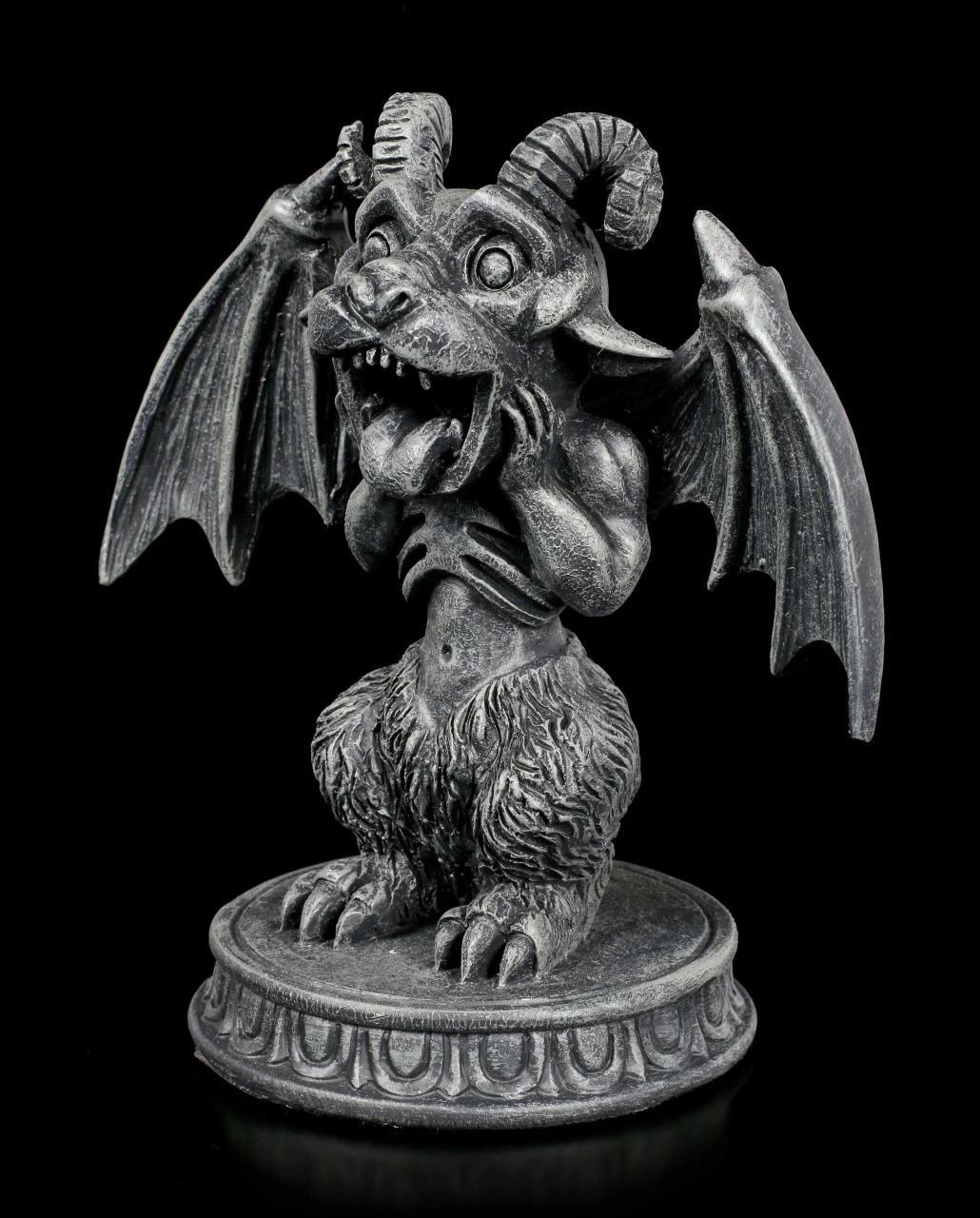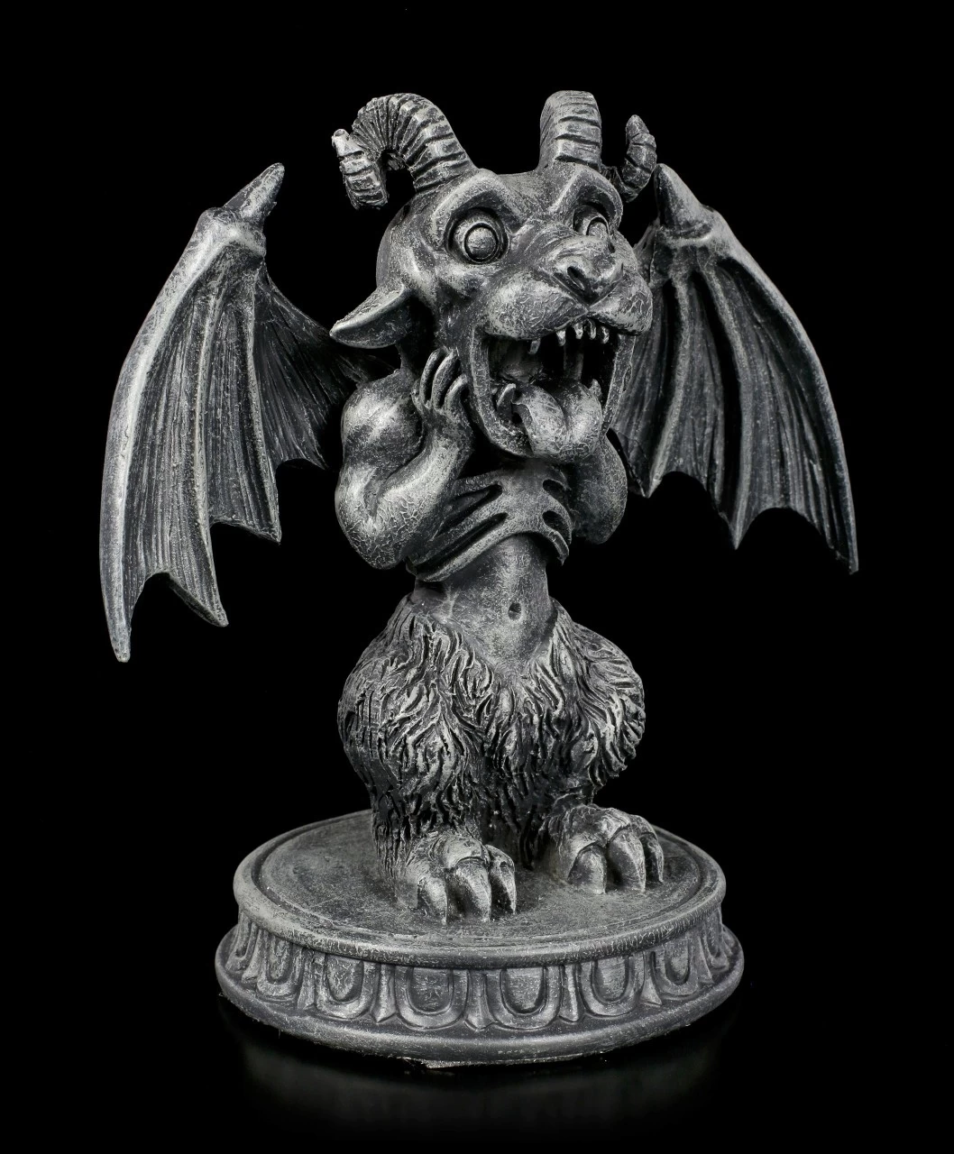 Sie sollen unser Haus vor bösen Geistern schützen und als Wächter dienen. So ganz für voll können wir den kleinen Gargoyle jedoch nicht nehmen. Grinsend mit herausgestreckter Zunge steht er auf seinen pelzigen Hinterbeinen und lacht uns entgegen. Aber dennoch, wir haben die handbemalte Figur aus Kunststein (Polyresin) sofort ins Herz geschlossen.
