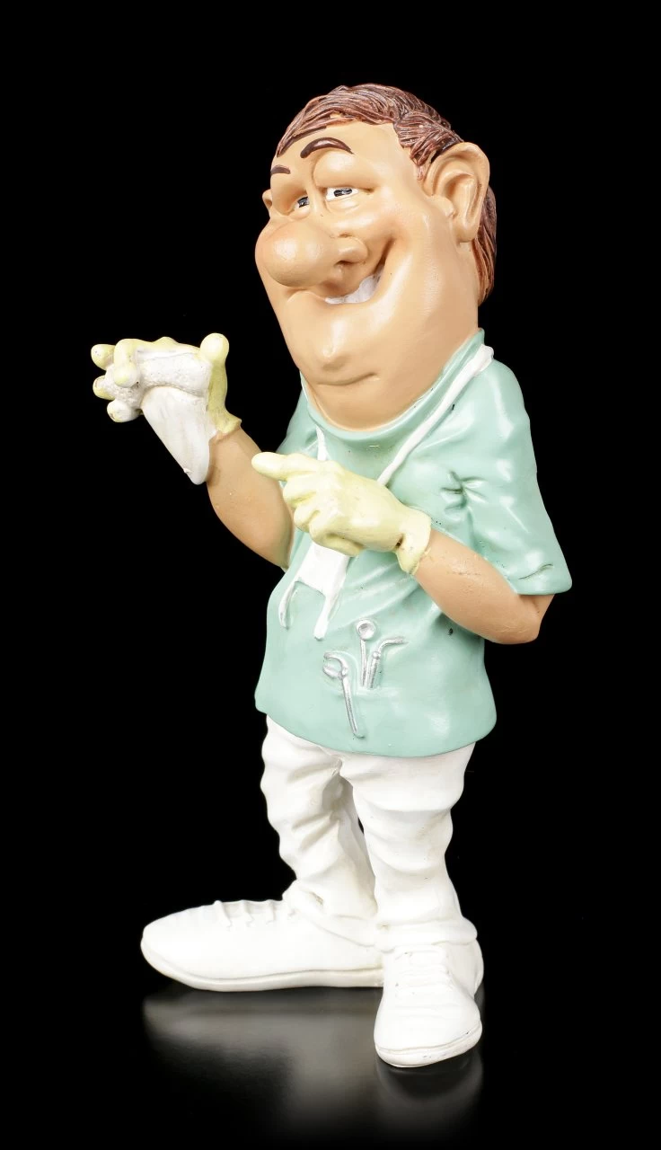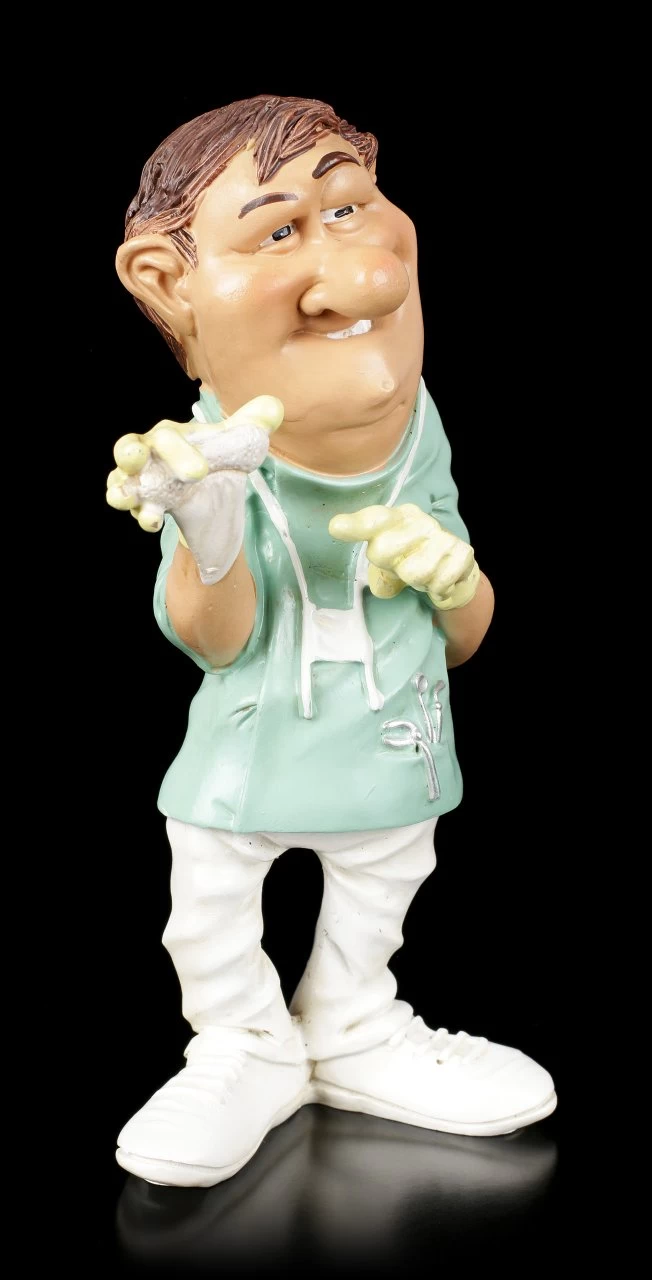 Der fleißige Zahnarzt aus der Funny Job Serie hat heute einen Auftritt vor einer Schulklasse. Er darf den Kindern zeigen, was für verschiedene Zähne es gibt. Die tolle Arzt Figur von Warren Stratford aus handbemaltem Kunststein (Polyresin) ist ein witziges Geschenk für einen engagierten Zahnarzt oder einen tolle Praxis. Weitere tolle Funny Job Figuren gibt es in unserem Shop.