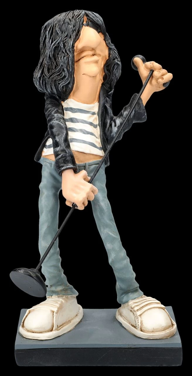 Am Mikro Joey – gemeinsam mit Dee Dee, Marky und Johnny gehört er heute noch zu den wichtigsten Wegweisern des Punk-Rock. Ganz egal, ob die vier diese Stilrichtung erfunden haben, oder nicht, die vier waren jedenfalls dafür berühmt. Wieder einmal begeistert der Künstler Warren Stratford alle mit seinen humorvollen Figuren, bei denen er den jeweiligen Charakter perfekt einfängt. In aufwändiger Handarbeit wird jede Figur von ihm persönlich entworfen und dann aus liebevoll handbemaltem Kunststein (Polyresin) hergestellt. Aus der Funny Popstar Serie stammt die 17 cm hohe, 8 cm breite und 8 cm tiefe Figur von Joey, der manchmal auch am Schlagzeug saß und gemeinsam mit den anderen zu den großen Stars der Musikgeschichte zählt. Er sollte mit den anderen drei Figuren der Bandmitglieder in keiner Sammlung fehlen und ist daher ein perfektes Geschenk. Auch alle weiteren großen Stars aus allen möglichen Stilrichtungen, wie Pop + Rock, Grunge etc. etc., sind in unserem Shop zu finden.