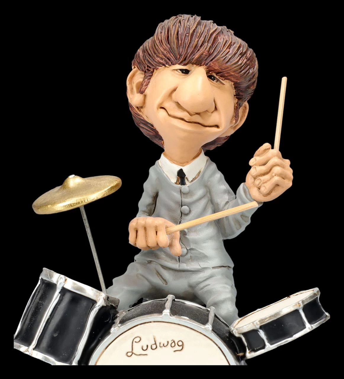 Ringo am Schlagzeug! Wer erkennt ihn nicht sofort? Aus der Funny Popstar Serie stammt die 15,5 cm hohe, 11,5 cm breite und 8,5 cm tiefe Figur von Ringo, der gemeinsam mit Paul, John und George unbestritten zu den absoluten Popstars der Musikgeschichte zählt. Er sollte mit den anderen drei Figuren der Bandmitglieder in keiner Sammlung fehlen und ist daher ein perfektes Geschenk. Hier hat sich Warren Stratford wieder mal übertroffen. Der Künstler Warren Stratford begeistert alle mit seinen humorvollen Figuren, bei denen er den jeweiligen Charakter perfekt einfängt. In aufwändiger Handarbeit wird jede Figur von ihm persönlich entworfen und dann aus liebevoll handbemaltem Kunststein (Polyresin) hergestellt. Auch alle weiteren großen Stars aus allen möglichen Stilrichtungen, wie Pop + Rock, Grunge etc. etc., sind in unserem Shop zu finden.