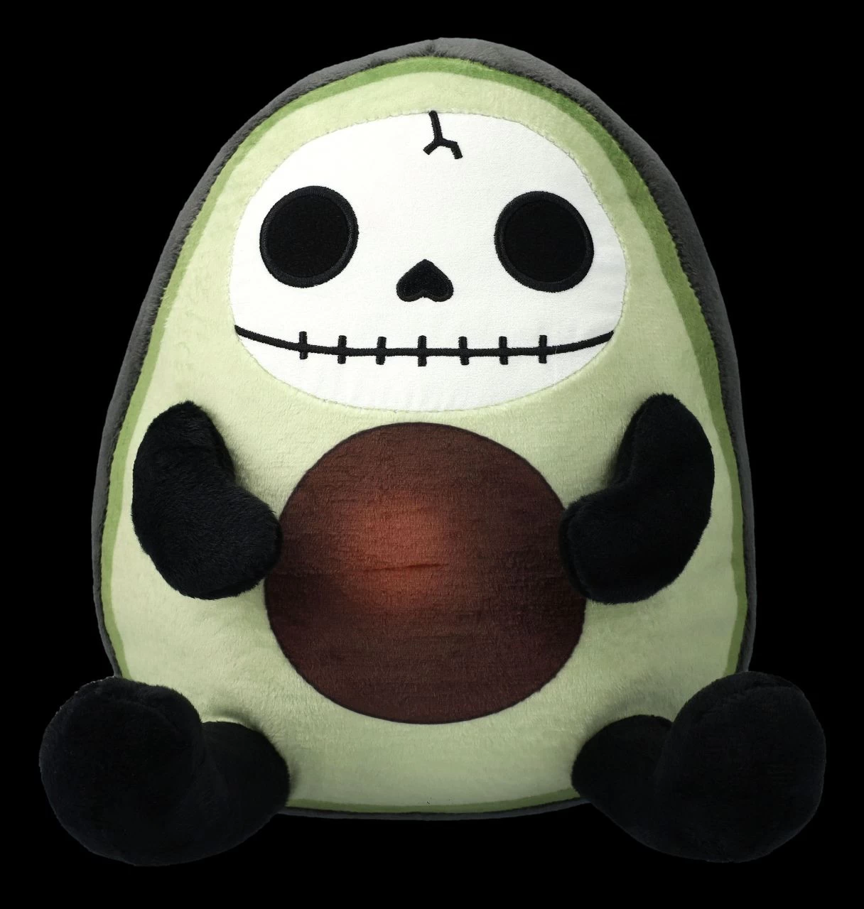 Avocados sind also nicht nur gesund, sondern kommen hier als niedliches, plüschiges Furrybone-Skelettchen ins Haus. Hass Avocados heißt es aber nicht, weil man Avocados hasst, sondern weil der Entdecker oder Züchter einer großen Avocadosorte Rudolf Hass war. Die putzige Furrybone-Plüschfigur Hass Avocado wurde aus kuschelig weichem 100 % Polyester gefertigt. Für Babies und Kleinkinder ist sie trotzdem nicht geeignet. Aber schließlich lieben nicht nur Kinder Plüschiges. Auch alle, die Avocados lieben, aber auch Gothic- und Halloween- und Manga–Fans werden sich über die 21 cm hohe, 18 cm breite und 18 cm tiefe Hass Avocado als kuschelig weiches Totenkopf-Figürchen als Geschenk sicher freuen. Sammler finden übrigens eine große Auswahl an weiteren niedlichen Furrybone-Figuren in unserem Shop.