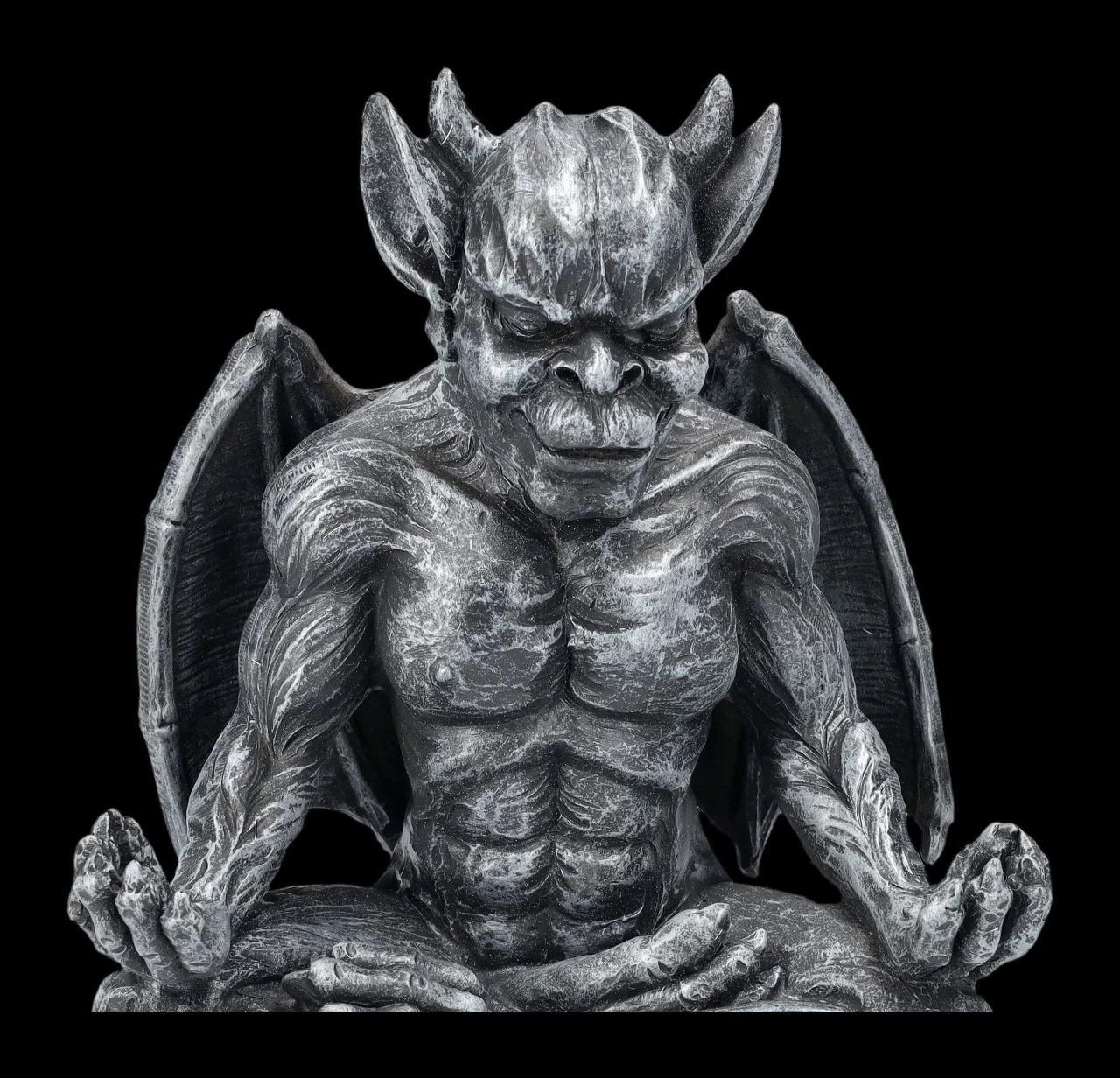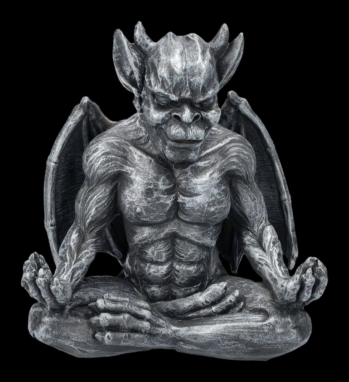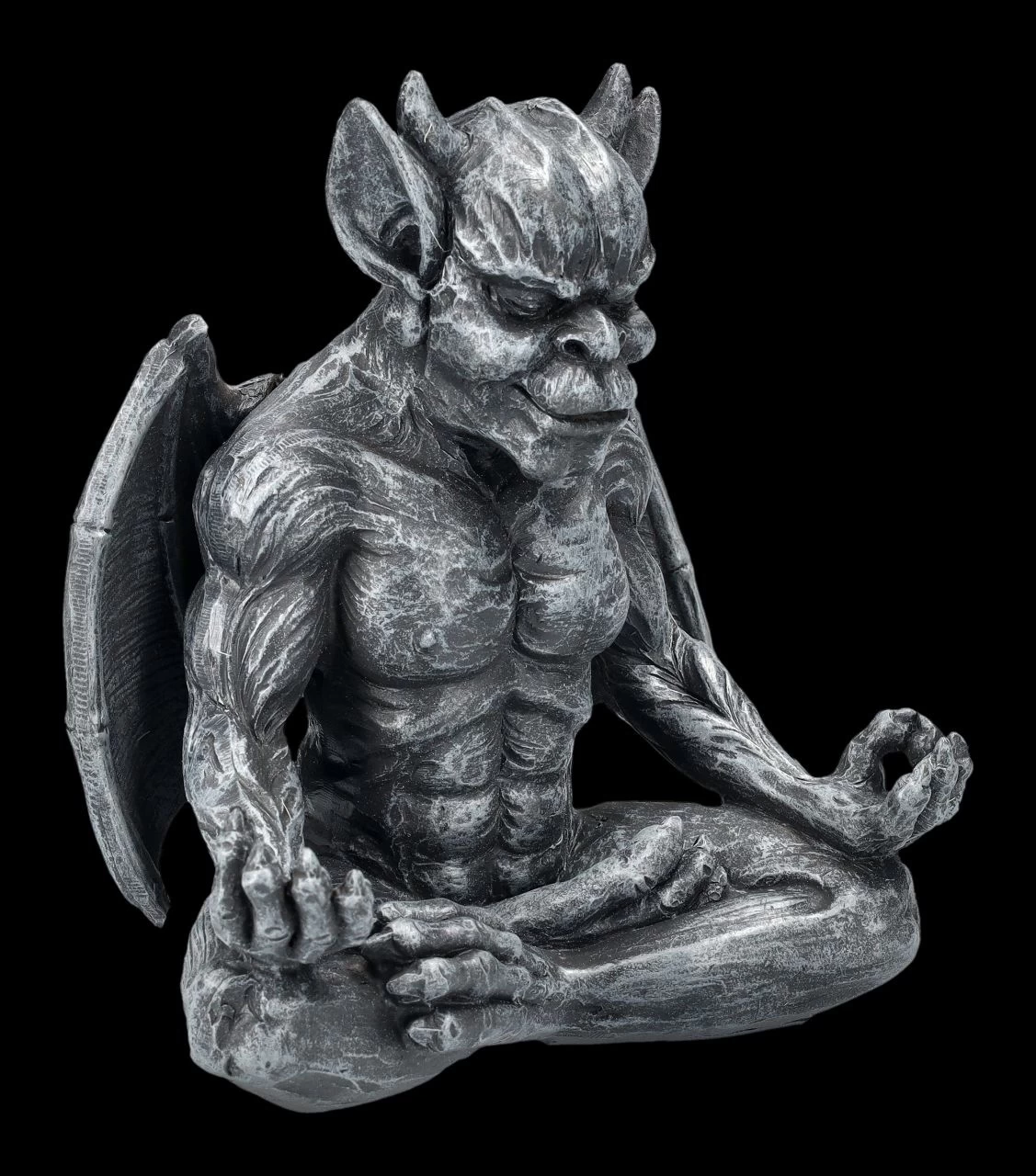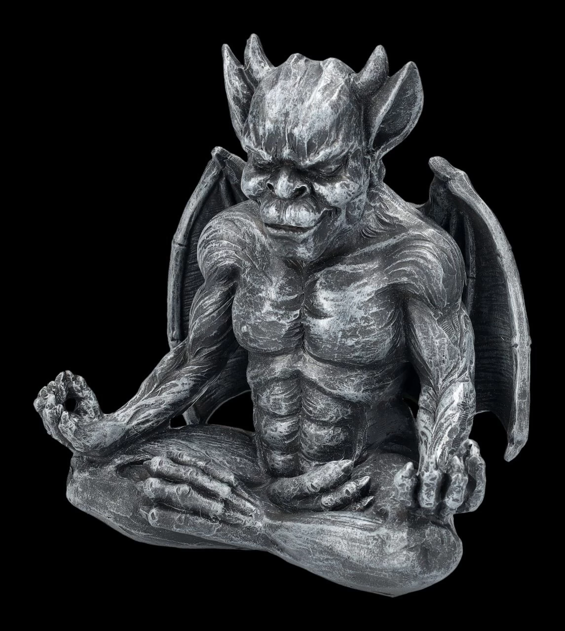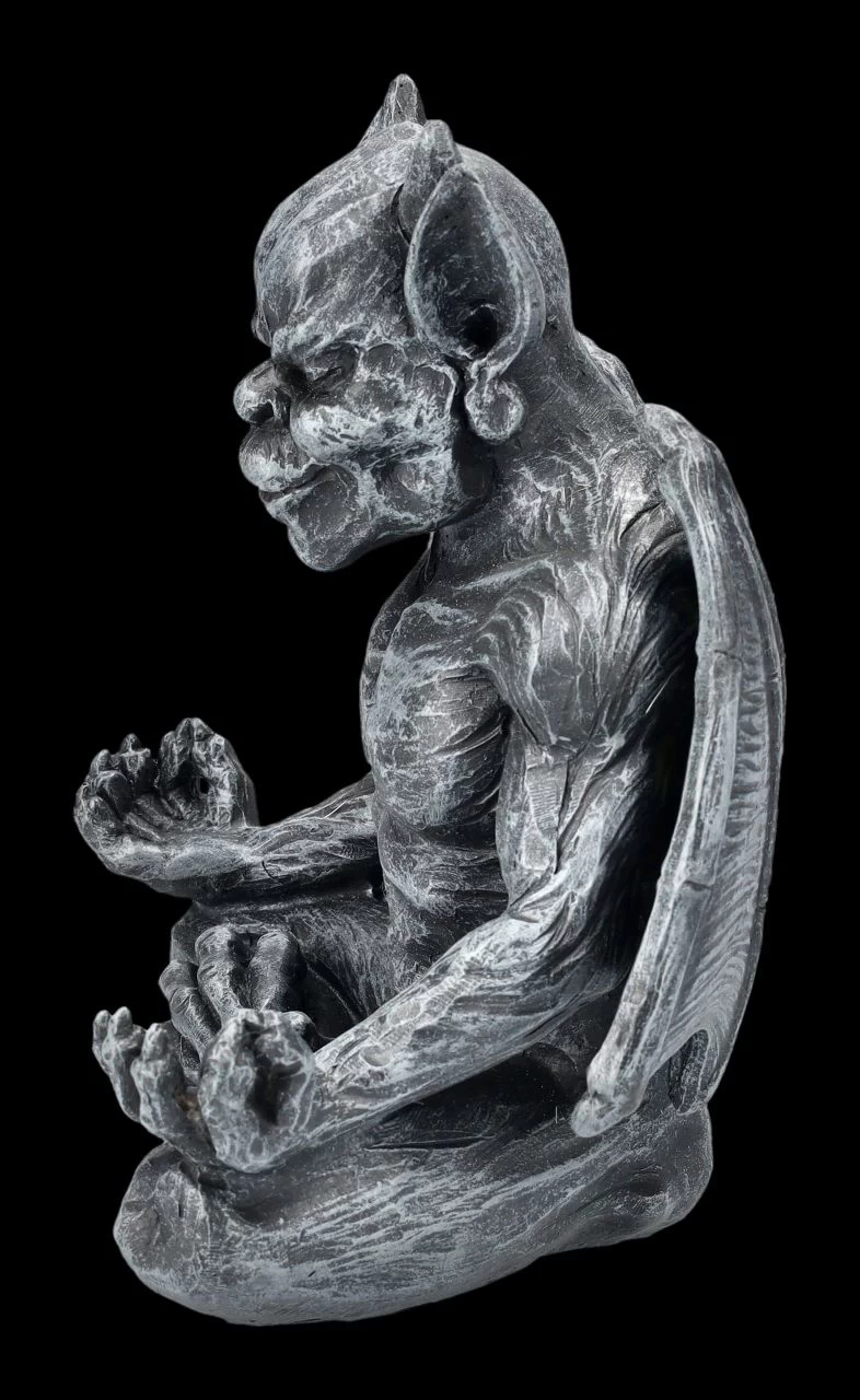 Ohm – dieser Gargoyle wird jeden Tag bei der Meditation neue Kräfte sammeln, um seine Aufgabe gestärkt ausüben zu können. Die fantastische Gargoyle-Figur bei der Meditation wurde aus handbemaltem Kunststein (Polyresin) gefertigt. Sie ist 16 cm hoch, 14 cm breit und 9,5 cm tief. Tagsüber zu Stein erstarrt, erwachen Gargoyles bekanntermaßen in der Nacht zum Leben. Sie stehen im Ruf, Menschen vor Dämonen und bosen Geistern schützen zu können. Der Eingangsbereich – auch zum Beispiel eines Yoga Studios – ist ein perfekter Platz für den meditierenden Gargoyle. Er ist aber auch ein achtsames Geschenk für liebe Freunde.