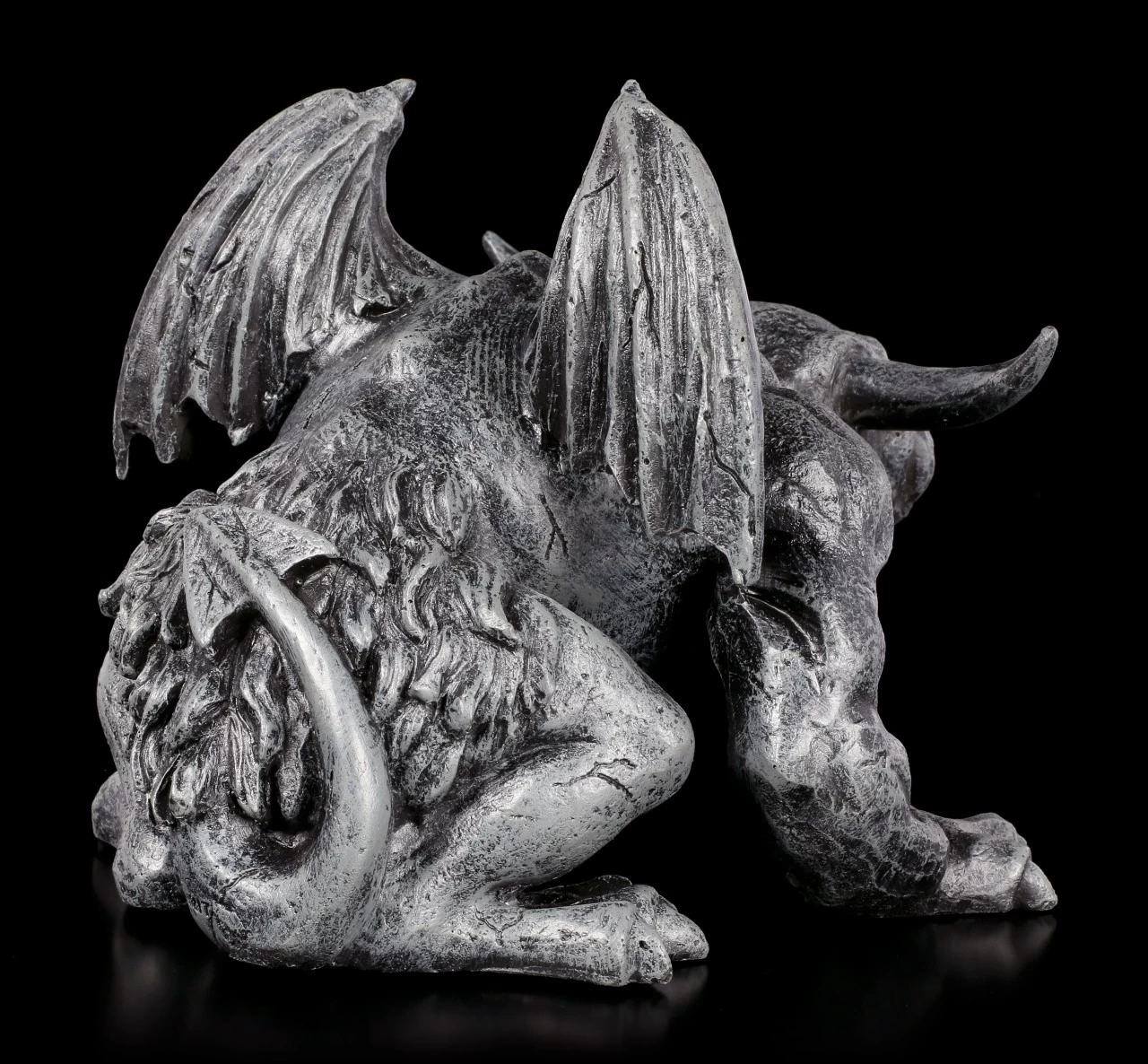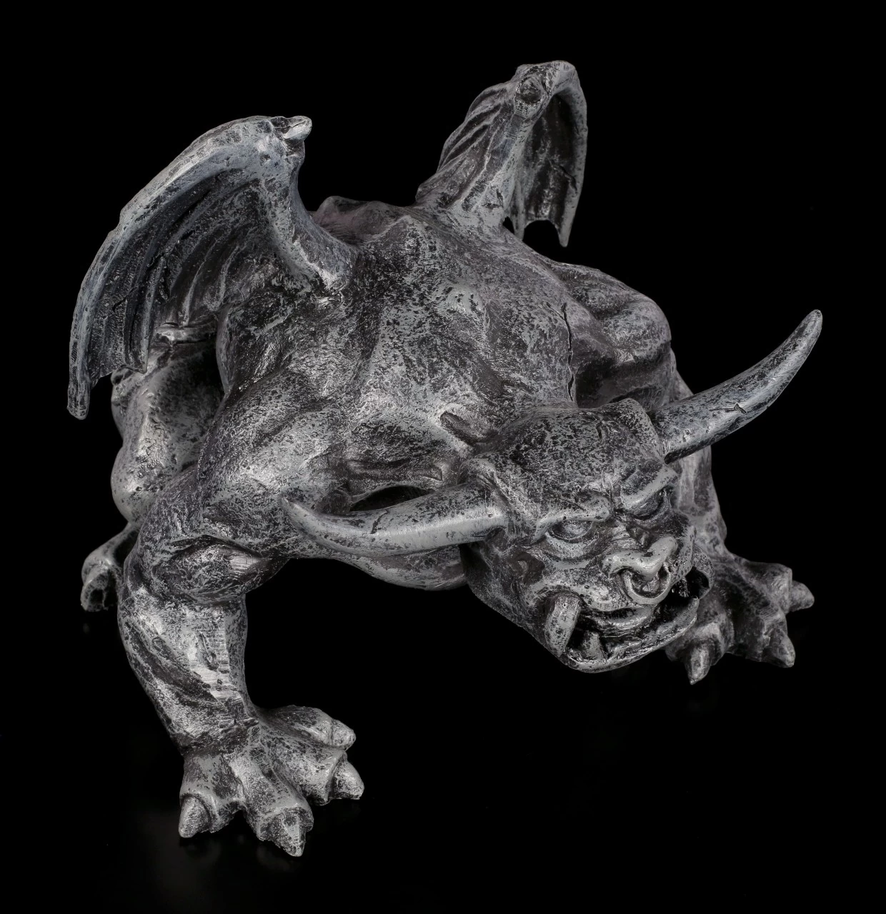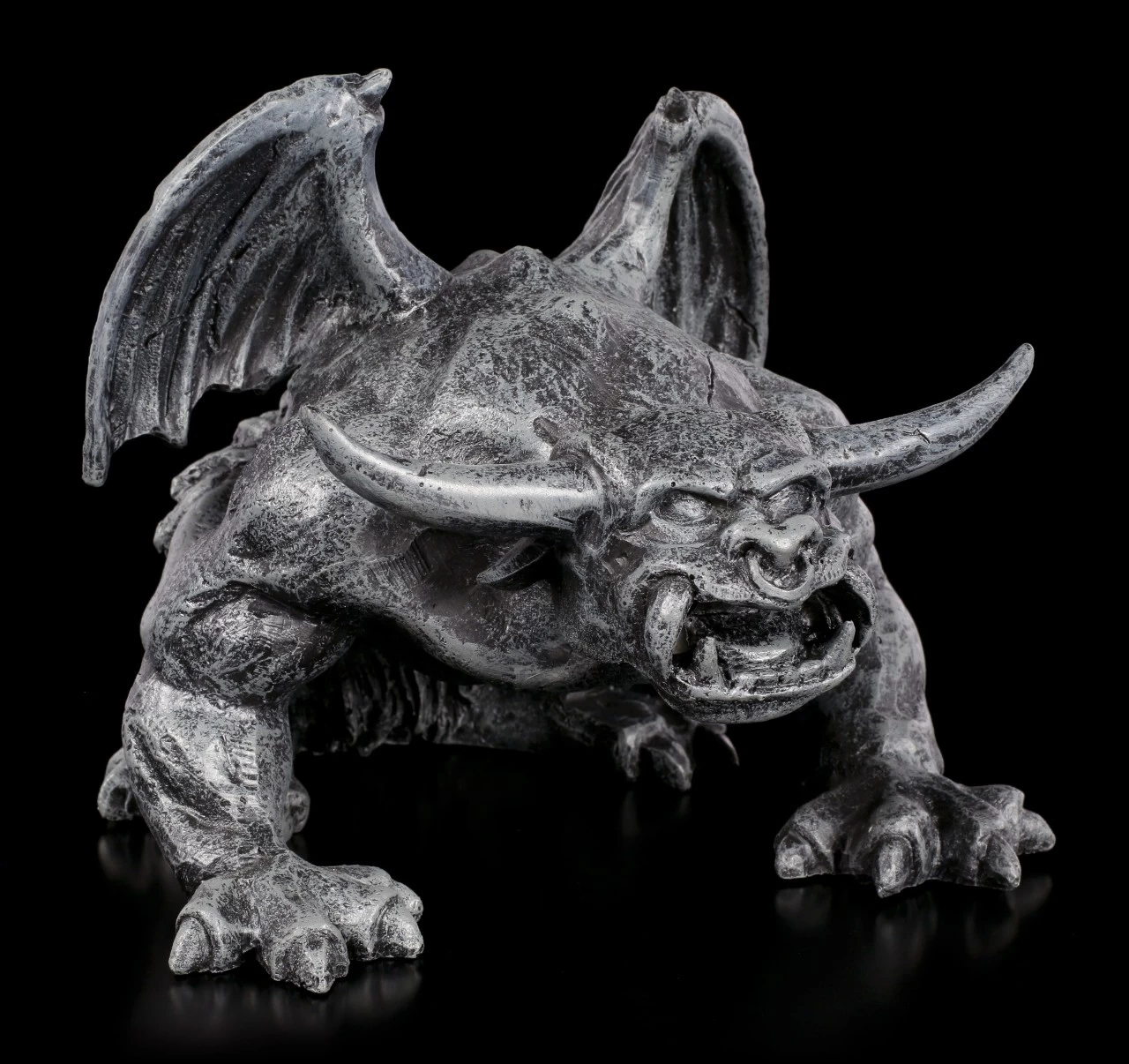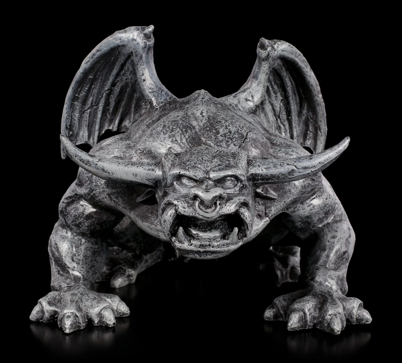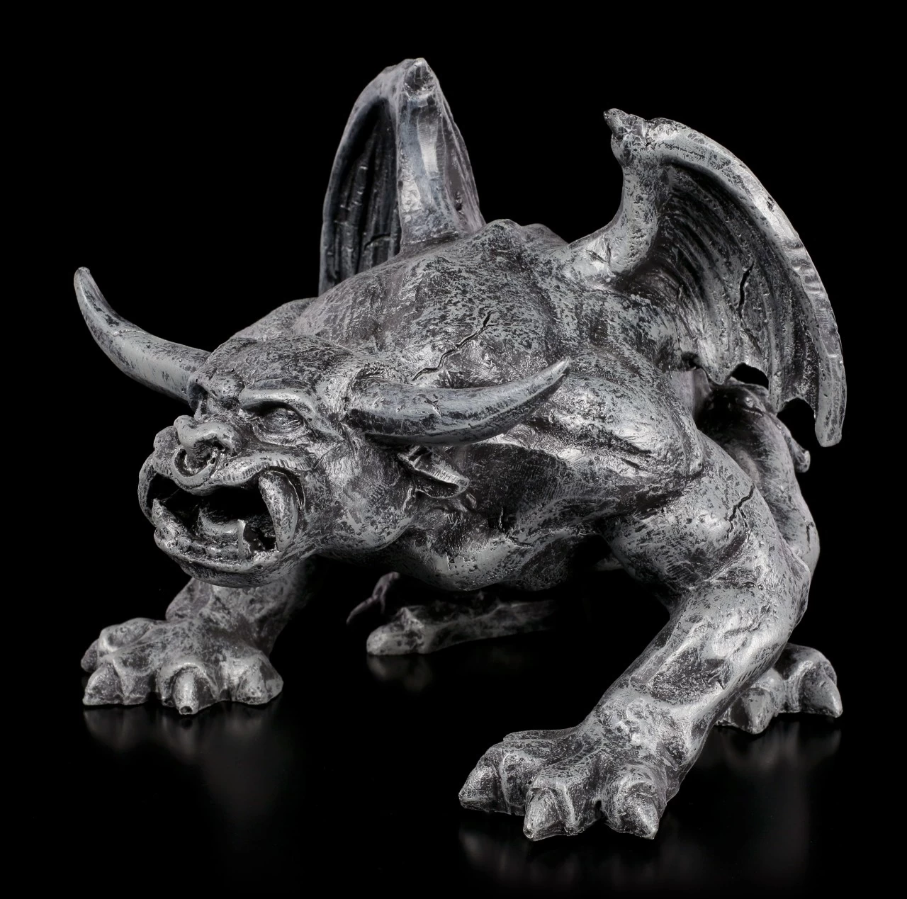 Oh, da ist ja jemand so richtig wütend! Der schwarze Gargoyle hat sich zum Angriff bereitgemacht und faucht aggressiv. Dieser interessante Gargoyle aus handbemaltem Kunststein (Polyresin) wird sich gut in Ihrer Sammlung machen.