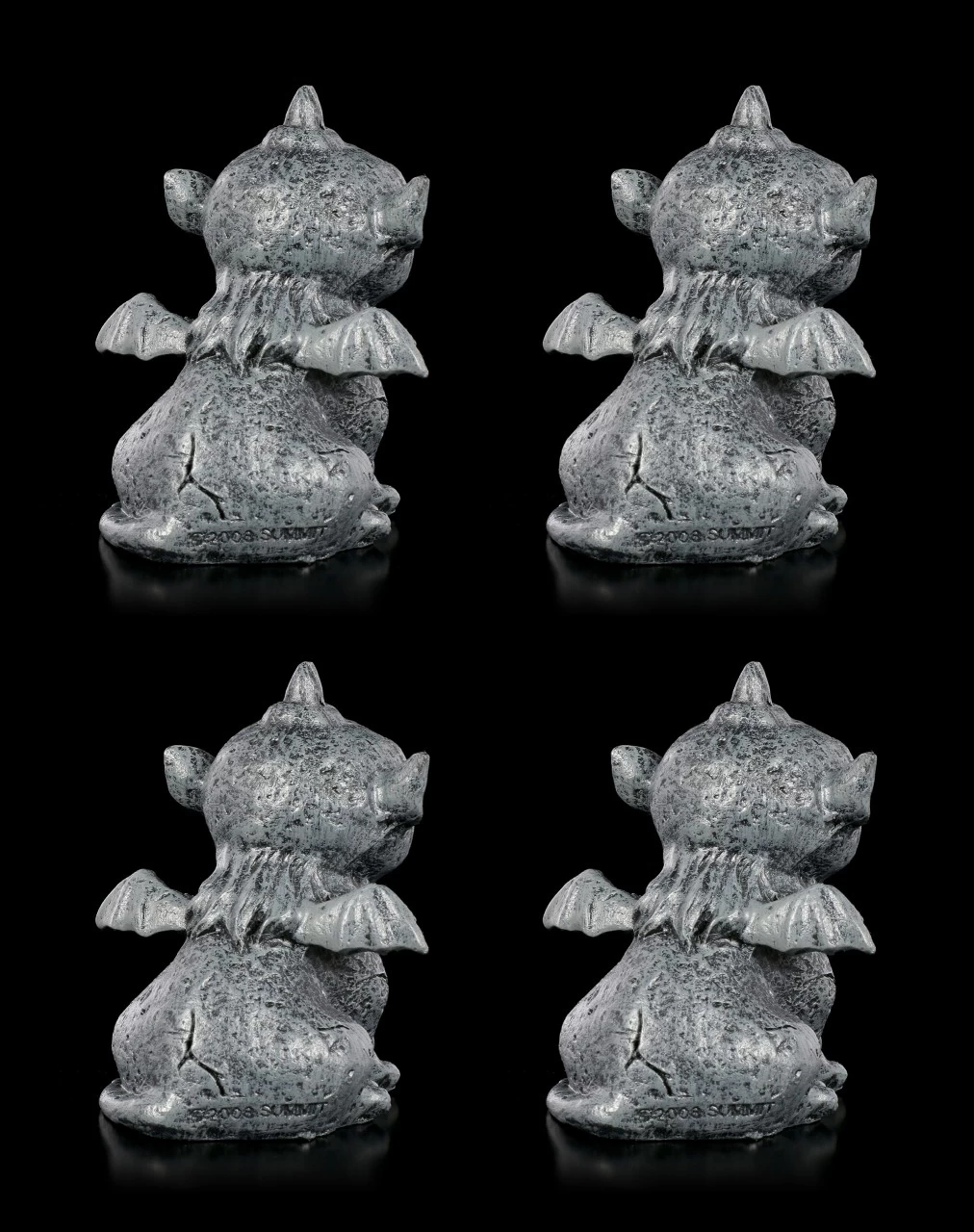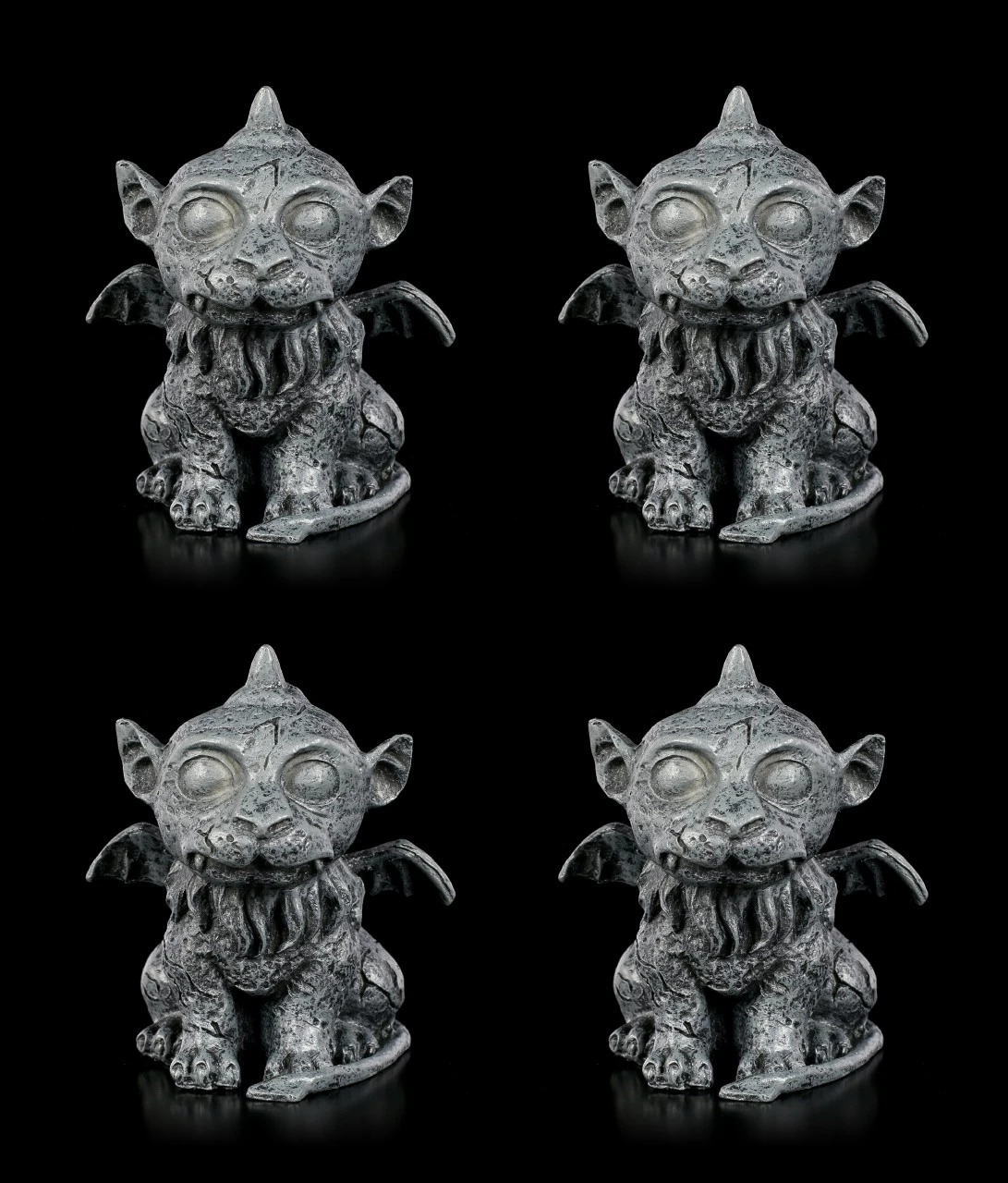 Sind diese vier kleinen Gargoyle Einhorn Babys nicht unheimlich niedlich? Sie sind eine Chimäre aus einem Einhorn, einem Löwen und einem Greifvogel. Durch die kleinen Flügel, die Lowenmähne und das kleine Horn wirken die vier Gargoyle Kinder tollpatschig und lustig. Die Glücksbringer wurden aus hochwertigem Kunststein (Polyresin) gefertigt und in schwarzer Steinoptik gehalten.