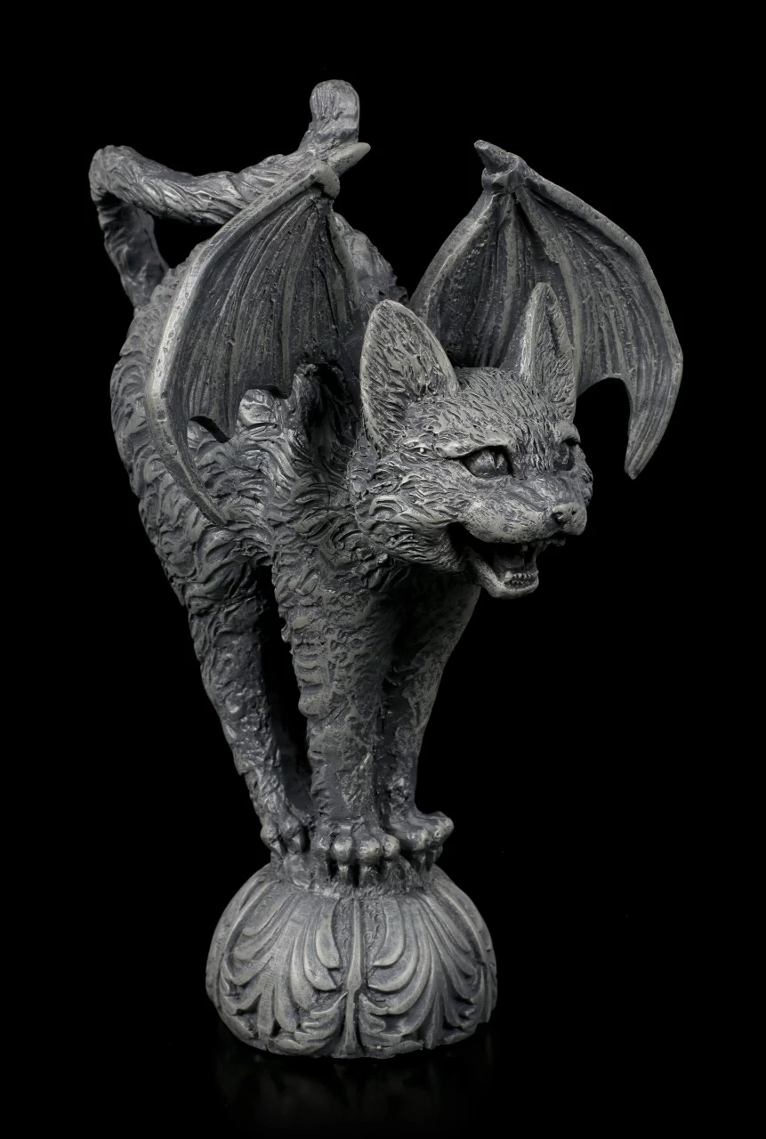 Was mag die geflügelte Gargoyle-Katze nur entdeckt haben? Einen bösen Geist vor dem Fenster? Einen Zauber der sich langsam um das Haus legt? Wir wissen es leider nicht. Aber eines ist klar, die schwarze Katze mit den Gargoylflügeln wird Sie vor allem beschützen, was kommen mag. Die handbemalte Gargoyle Figur aus Kunststein (Polyresin) ist wirklich etwas ganz Besonderes.