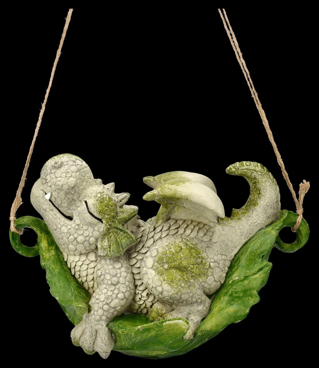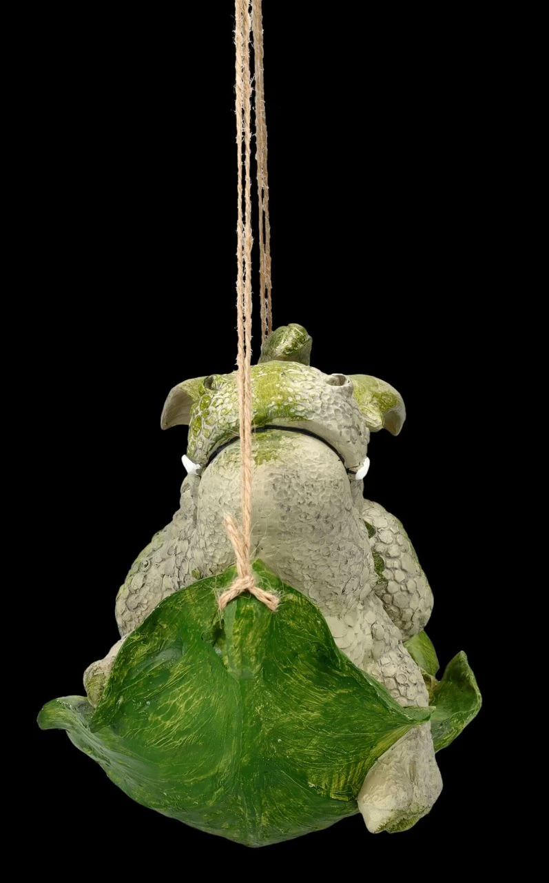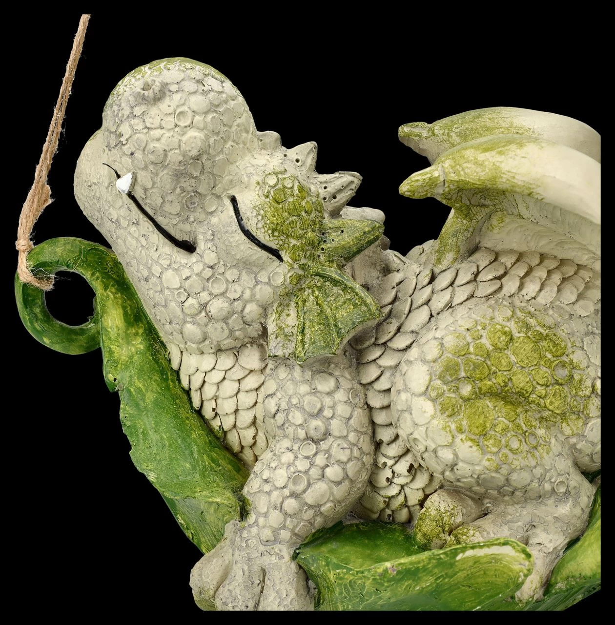 Oooohhhh wie wunderbar – so kann man den ganzen Tag durchhängen…. Ob im Garten, auf der Terrasse oder auf dem Balkon – dieser kleine Drache in der Hängematte fühlt sich dort vom Frühjahr bis in den Herbst hinein offenbar ausgesprochen wohl. Und im Winter freut er sich dann auf einen geschützten Platz auf der Blumen- oder Fensterbank. Die Garten Figur aus der Serie Magical Garden ist aus liebevoll handbemaltem Kunststein (Polyresin). Mit geschlossenen Augen und zufrieden lächelnd liegt der 16,5 cm hohe, 24 cm breite und 14 cm tiefe kleine Drache in der Hängematte, die er sich aus Blättern gebaut hat. Er ist auch ein lustiges Geschenk für alle Drachenfreunde.