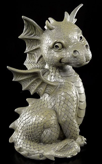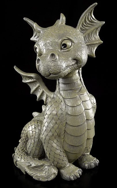Ganz brav wartet der kleine Drache darauf, dass er wieder mit seinen Freunden spielen darf. Dabei sieht er so niedlich aus, dass niemand ihm widerstehen kann. Der kleine Drache ist detailreich aus Kunststein (Polyresin) gefertigt und sucht dringend ein neues Zuhause. Haben Sie vielleicht ein kleines Plätzchen für ihn?