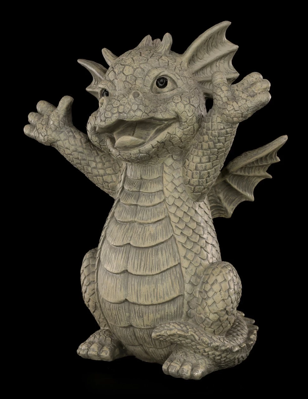Der niedliche Drache begrüßt mit offenen Armen freudig alle neuen Gäste. Bei so einer Begrüßung fühlt sich doch jeder gleich Willkommen. Der kleine Drache ist aus liebevoll handbemaltem Kunststein (Polyresin) und wird sicher jedem Besucher ein Lächeln entlocken.