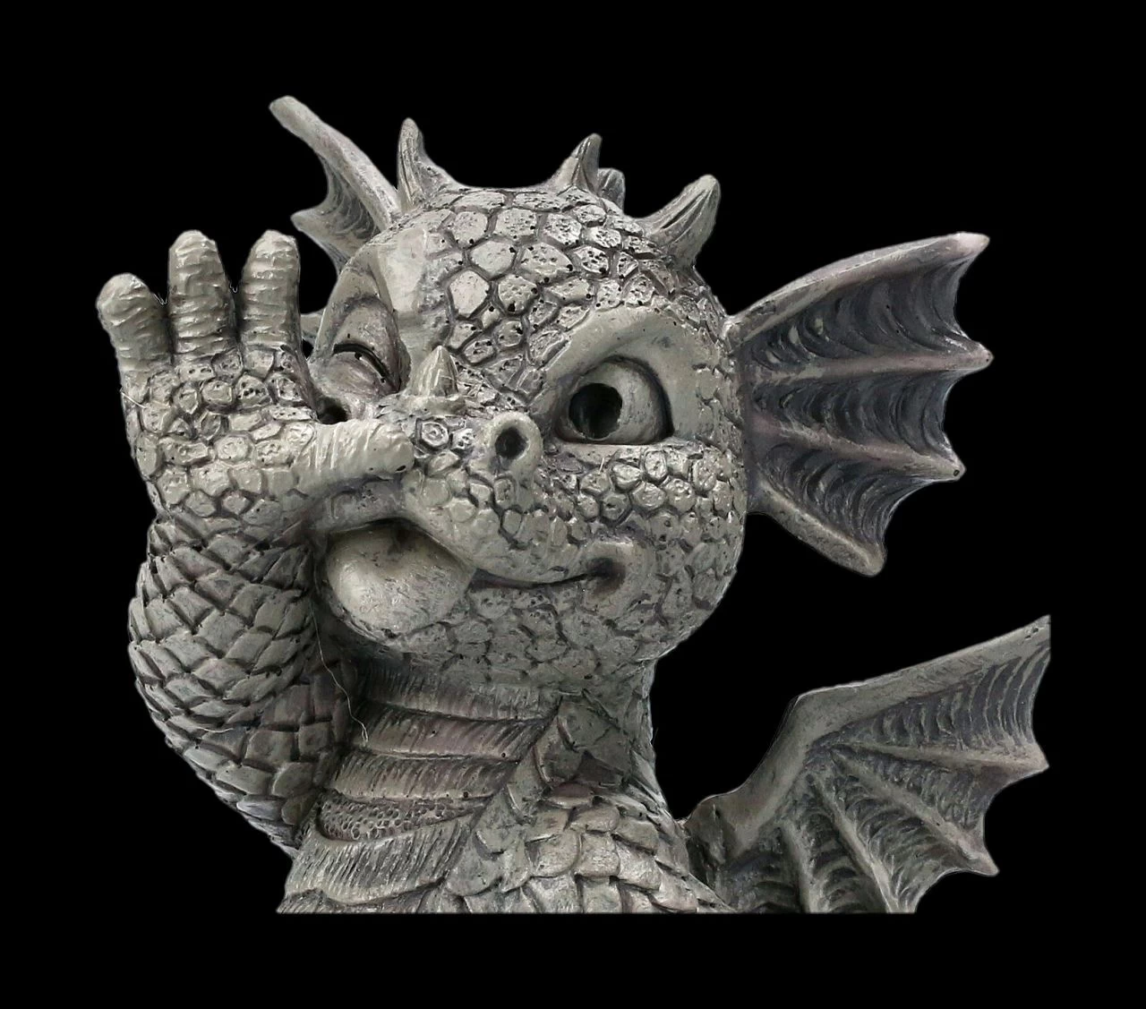 Dieser lustige Frechdachs wird sicher alle Ihre Besucher zum Lachen bringen, wenn Sie ihn direkt in Ihrem Eingangsbereich platzieren. Der lustige Drache ist sehr witzig und detailreich aus Kunststein (Polyresin) gefertigt und handbemalt. Mit seiner Höhe von 13 cm, der Breite von 7,5 cm und der Tiefe von 7 cm ist der Frechdachs auch eine lustige Deko im Blumenkasten und nicht nur für Drachen- und Gartenfreunde ein witziges Geschenk.