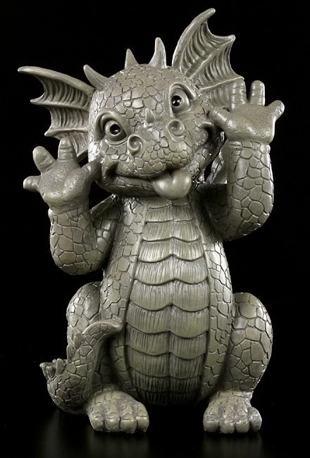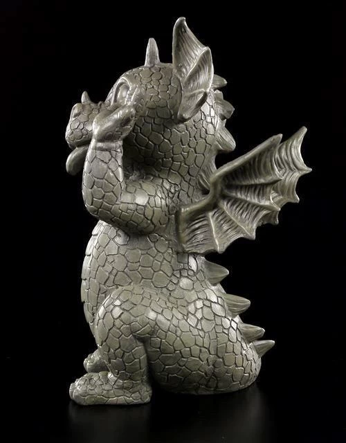 Och, da ist ja jemand frech! Der kleine Drache schneidet doch tatsächlich eine freche Grimasse. Aber so einem niedlichen Drachen kann man gar nicht Böse sein. Dieser Drache aus handbemaltem Kunststein (Polyresin) schmückt dekorativ Ihren Garten, die Terrasse oder den Balkon, fühlt sich aber auch auf der Fensterbank beim Beobachten der vorbeigehenden Passanten richtig wohl.