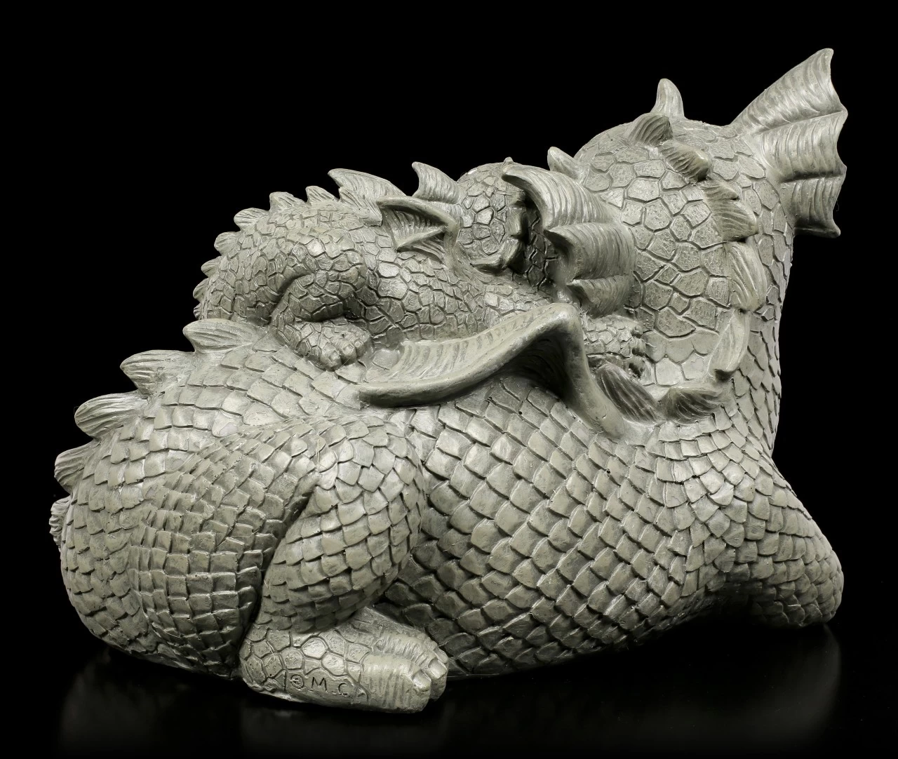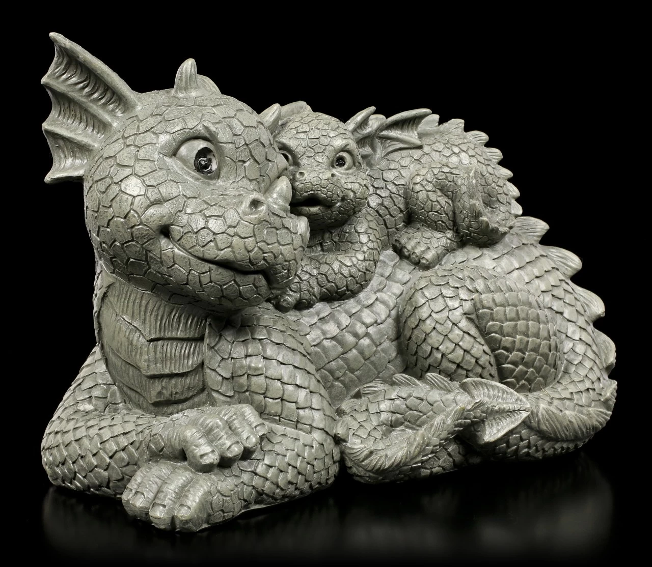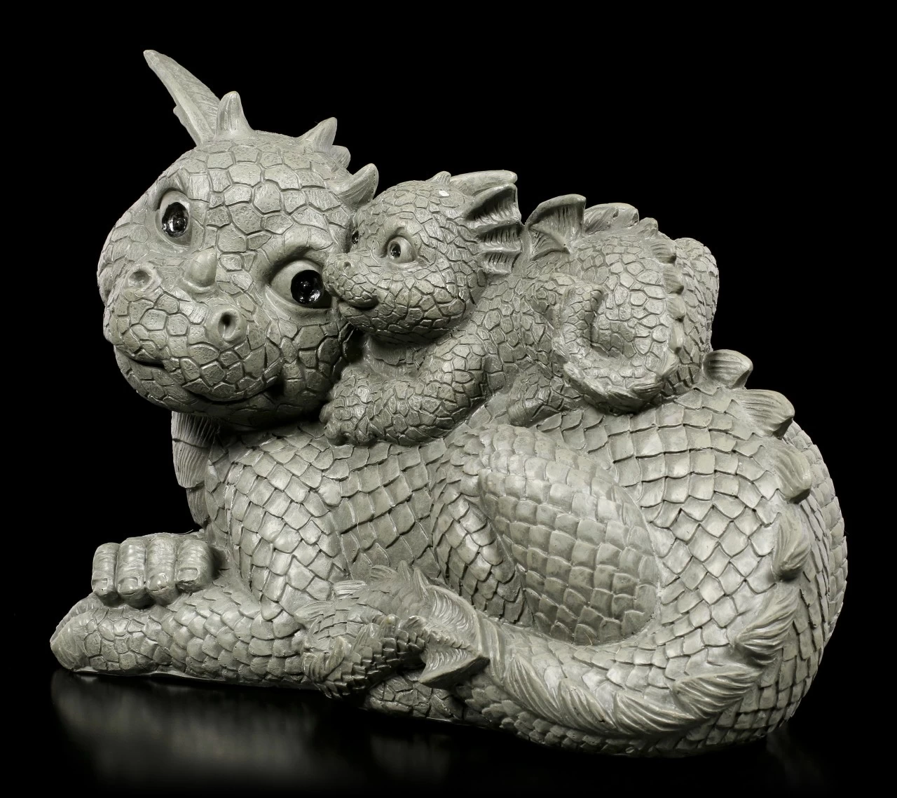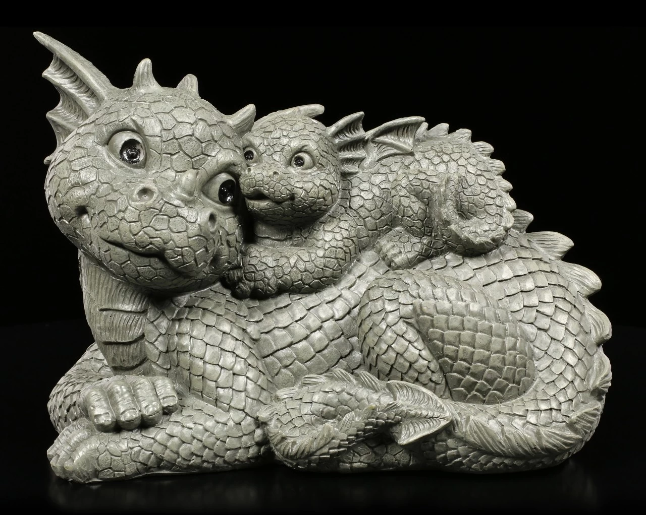 Die süße Drachen Garten Figur ist ein wundervolles Geschenk zum Einzug oder vielleicht auch zur Geburt eines Kindes. Die Drachen Mama lässt ihr Drachen Junges auf dem Rücken toben und freut sich mit ihm über den Sonnenschein. Die handbemalte Garten Figur aus Kunststein (Polyresin) wird Sie begeistern