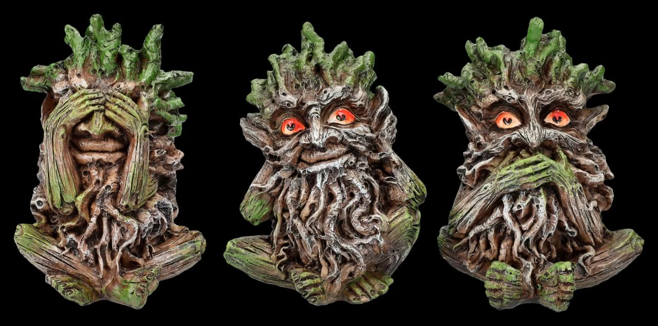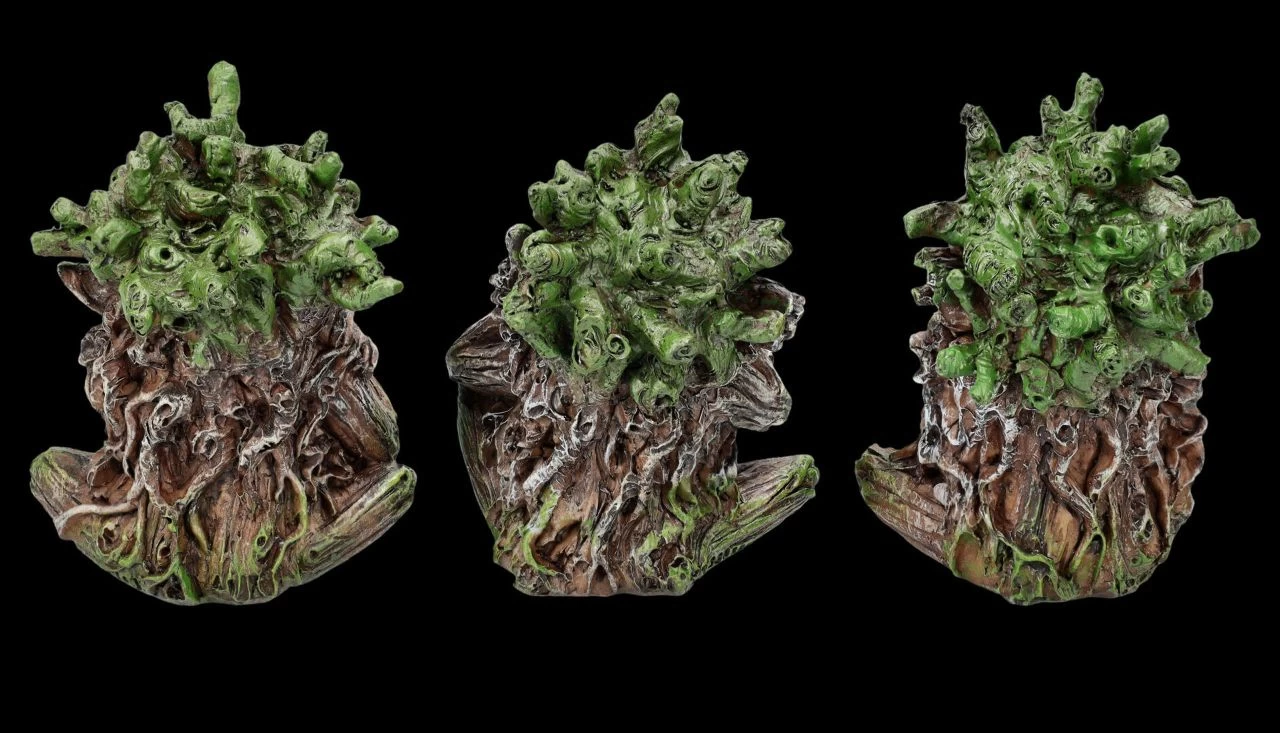 Du liebe Güte – deutlicher können die Grünen Männer nicht darstellen, dass sie nichts Böses mehr höhren, sehen oder sogar sagen wollen. Die witzigen Greenman-Figuren sind je 10 cm hoch, je 7,5 cm breit und je 9 cm tief. Sie sind sehr detailreich aus handbemaltem Kunststein (Polyresin) gefertigt und kommen im 3er Set. Die drei Greenman sind nicht nur eine witzige Deko, sie sind auch ein vielsagendes Geschenk, das sicher auch in der Arbeit auf jedem Schreibtisch zum Blickfang wird und zu vielen Fragen Anlass geben wird.