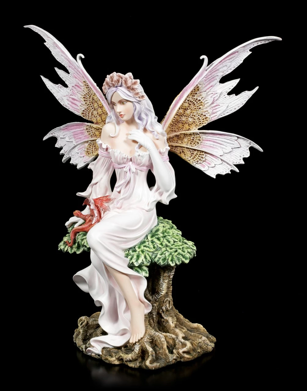 Phina hat ihr hübschestes Kleid angezogen, ihre Flügel hat sie mit der feinsten Spitze geschmückt, denn sie wartet auf ihren Liebsten. Red, ihr kleiner roter Drache ist schon ganz eifersüchtig, dass er nun ihre Liebe teilen muss. Das Kleid umspielt im Wind Phinas Körper und sie sieht einfach nur bezaubernd aus. Diese handbemalte Kunststein Elfe wird eine Bereicherung Ihrer Sammlung sein.