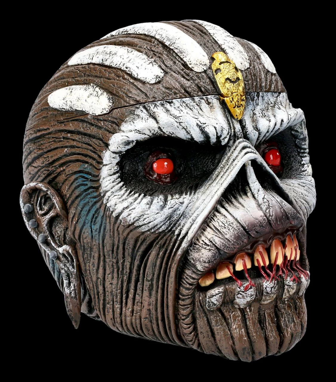 Iron Maidens ikonisches Maskottchen Eddie als Schatulle – wie cool ist das denn. Von dieser tollen Zombie Schatulle „Eddie Book of Souls“ werden alle Fans begeistert sein. Sie ist außerordentlich detailreich aus Kunststein (Polyresin) gefertigt und sorgfältig von Hand bemalt. Der Zombie Schädel ist 14 cm hoch, 15 cm breit und 18,5 cm tief. Wenn man die Schädeldecke abhebt, entdeckt man die Schatulle mit den Innenmaßen von H: 8 cm / B: 10 cm / T: 12 cm. Eddie Book of Souls ist mit Sicherheit auch ein perfektes Geschenk für alle Iron Maiden Fans und wird inklusive eines toll bedruckten Geschenkkartons verschickt.