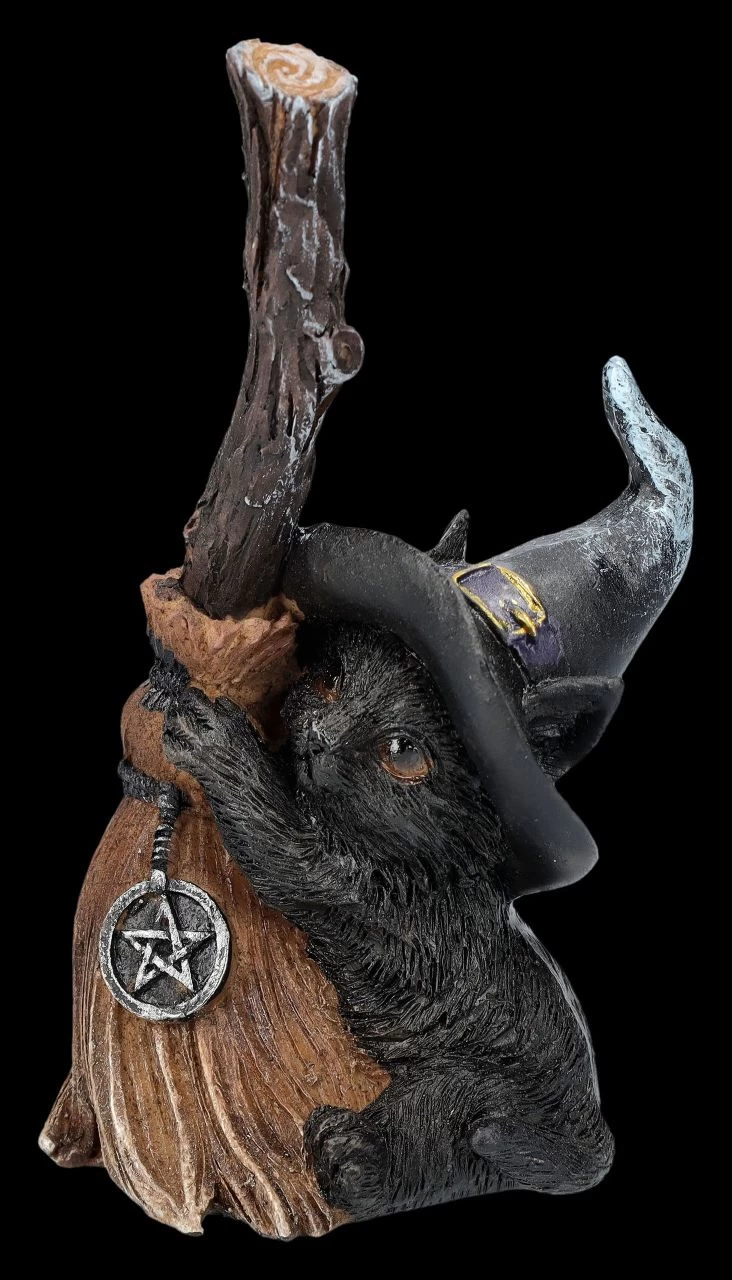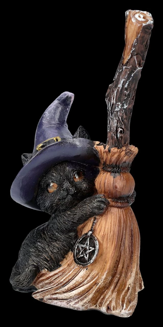 Ob es wohl reicht, wenn sich die beiden frechen schwarzen Katzen Hexenhüte aufsetzen, damit sie mit dem Besen ihrer Hexe davon fliegen können? Die niedlichen Katzen mit den mit einem Pentagramm geschmückten Hexenbesen sind aus liebevoll handbemaltem Kunststein (Polyresin). Sie kommen im 2er-Set und sind je 11,5 cm hoch, je 6,5 cm breit und je 4,5 cm tief. Die lustigen Katzen sind nicht nur an Halloween eine perfekte Deko und ein tolles Geschenk für große und klein Hexen.