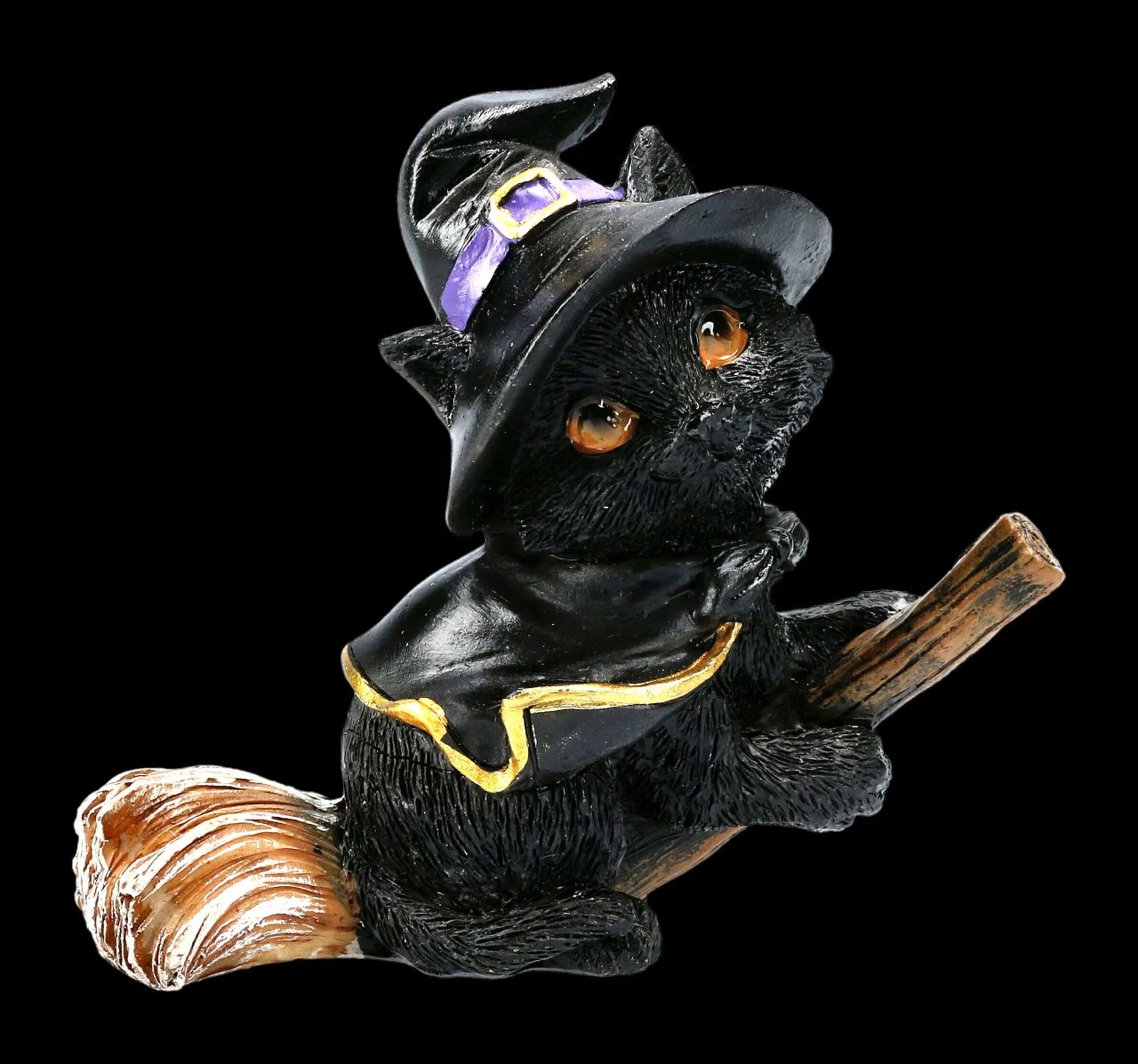 Darf ich mit meinem Besen bei Dir landen? Diesem Blick der kleinen Hexenkatze Tabitha kann wohl niemand widerstehen. Die niedliche Hexenkatze Tabitha ist sehr liebevoll aus Kunststein (Polyresin) gefertigt und handbemalt. Sie ist 8,5 cm hoch, 11 cm breit und 5 cm tief. Tabitha ist ein süßes Geschenk für alle Hexenkatzen-Freunde.