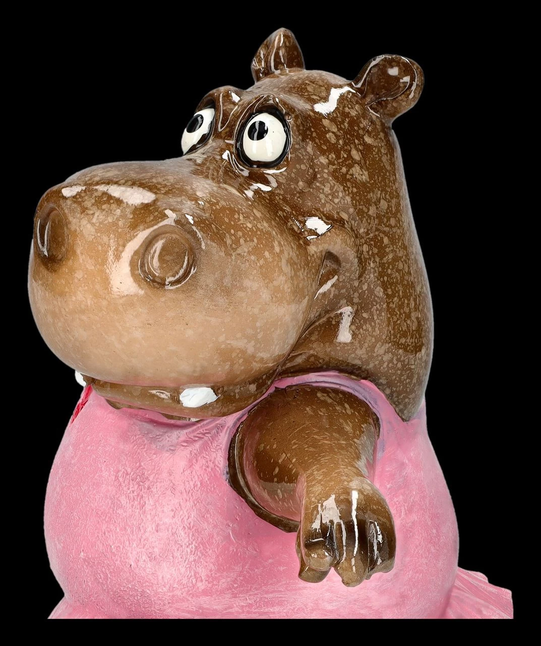 Wer sagt denn, dass ich nicht auch bei meinem stolzen Gewicht grazile Pirouetten drehen kann? Stolz zeigt das lustige Nilpferd, dass es auch als Ballerina eine gute Figur macht. Das witzige Nilpferd im rosafarbenen Tutu ist detailreich aus handbemaltem Kunststein (Polyresin) gefertigt. Die 18 cm hohe, 13 cm breite und 10 cm tiefe Nilpferd-Figur als Ballerina ist einfach köstlich anzusehen und damit auch ein humorvolles Geschenk und auch eine lustige Deko für den Übungsraum.