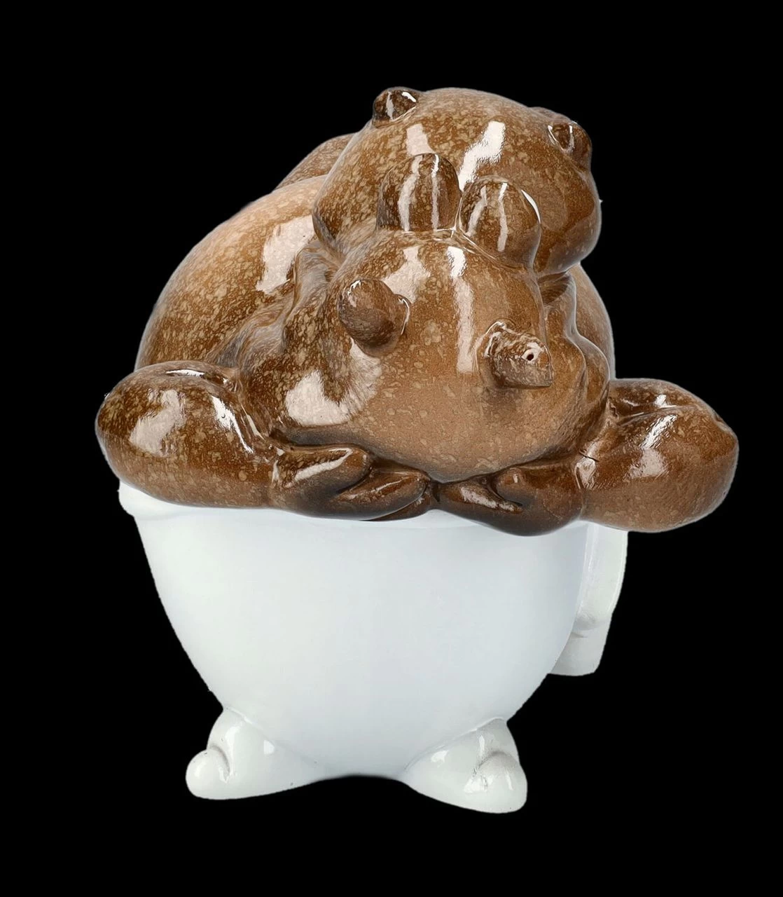 So lässt sich doch die größte Hitze aushalten – Eiswürfel in die Badewanne und dann eine Stunde Siesta in der Mittagspause…. Dieses Nilpferd macht es richtig. Die 10,5 cm hohe, 16 cm breite und 9 cm tiefe lustige Nilpferd Figur in der Badewanne ist aus Kunststein (Polyresin) gefertigt und liebevoll handbemalt. Sie ist ein witziges Geschenk – auch z.B. für Kolleginnen und Kollegen, wenn es mal so richtig heiß her geht.
