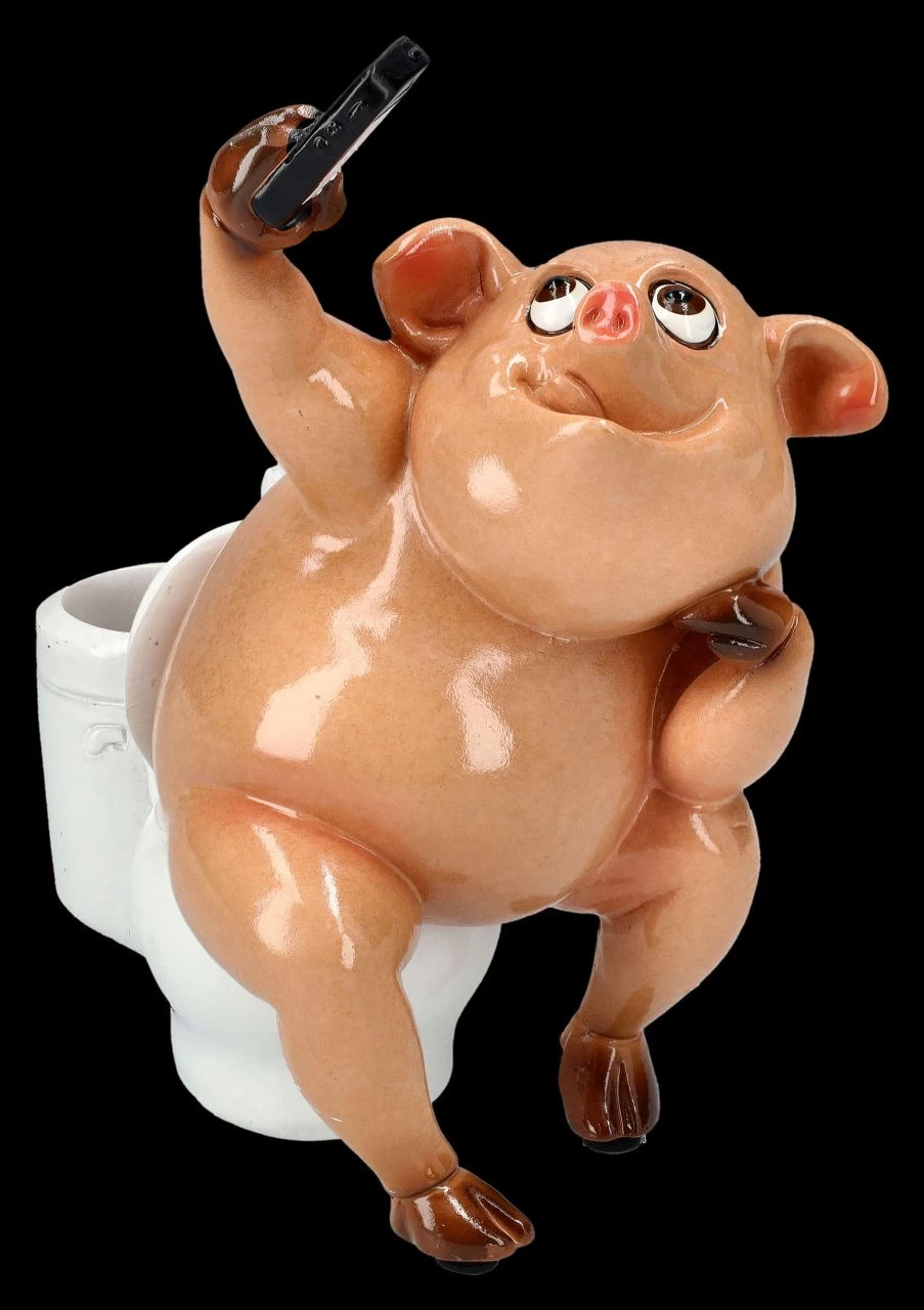 Schweinisches Selfie: Lustige Figur auf dem WC!