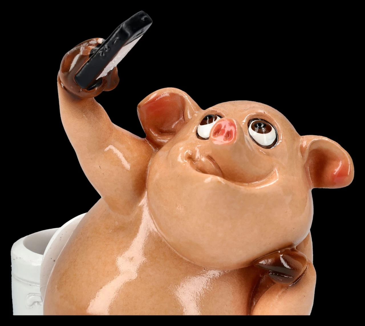 So ein Schweinchen – da macht er sogar am Klo ein Selfie und stellt das dann ins Netz. Dem witzigen rosa Schweinchen ist die Kritik daran ganz offensichtlich völlig egal, wie man an dem zufriedenen Grinsen leicht erkennen kann. Die lustige Schweine Figur beim Selfie am Klo ist aus Kunststein (Polyresin) gefertigt und liebevoll handbemalt. Sie ist 15,5 cm hoch, 13,5 cm breit und 8,5 cm tief. Für jemanden, der gerne Selfies von sich in jeder Lebenslage verschickt, ist dieses lustige Schweinchen – z.B. als Deko für ein Bad oder die Toilette – ein humorvolles Geschenk