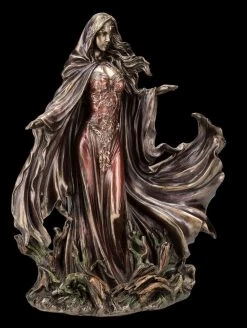 Die wunderschöne Meerjungfrau scheint im Mondlicht gerade aus den Tiefen des Ozeans aufgetaucht zu sein, um sich an ihrem Lieblingsplatz etwas auszuruhen. Anders als das dänische Nationalsymbol und Wahrzeichen an der Uferpromenade von Kopenhagen lieg diese Meerjungfrau ganz ruhig verführerisch da und blickt auffordernd ihren Betrachter an. Ihre Flosse hat sie neckisch in die Höhe gestreckt. Das geheimnisvolle Wesen ist halb wunderschöne Frau und halb Fisch und es soll – wie bekannt – schon Menschen gegeben haben, in die sich eine Meerjungfrau unsterblich verliebte. Die schöne, edel bronzierte und sehr zurückhaltend und fein colorierte Meerjungfrau stammt aus der Studio Collection von Veronese und wurde sehr detailreich aus hochwertigem Kunststein (Polyresin) hergestellt. Ein Platz an der Badewanne oder vielleicht auch am Pool, damit die schöne Meerjungfrau bei Bedarf gleich abtauchen kann – das wäre vermutlich richtig, aber viel zu schade. Die geheimnisvolle Schöne hat mit ihrer schlanken und eleganten Silhouette einen Platz verdient, bei dem sie effektvoll im Mittelpunkt steht. Wo diese wunderschöne Meerjungfrau auch steht bzw. liegt, mit ihrer Höhe von 43 cm, der Breite von 64,5 cm und der Tiefe von 25 cm ist sie ein absolut beeindruckender Blickfang mit großer Ausstrahlung.