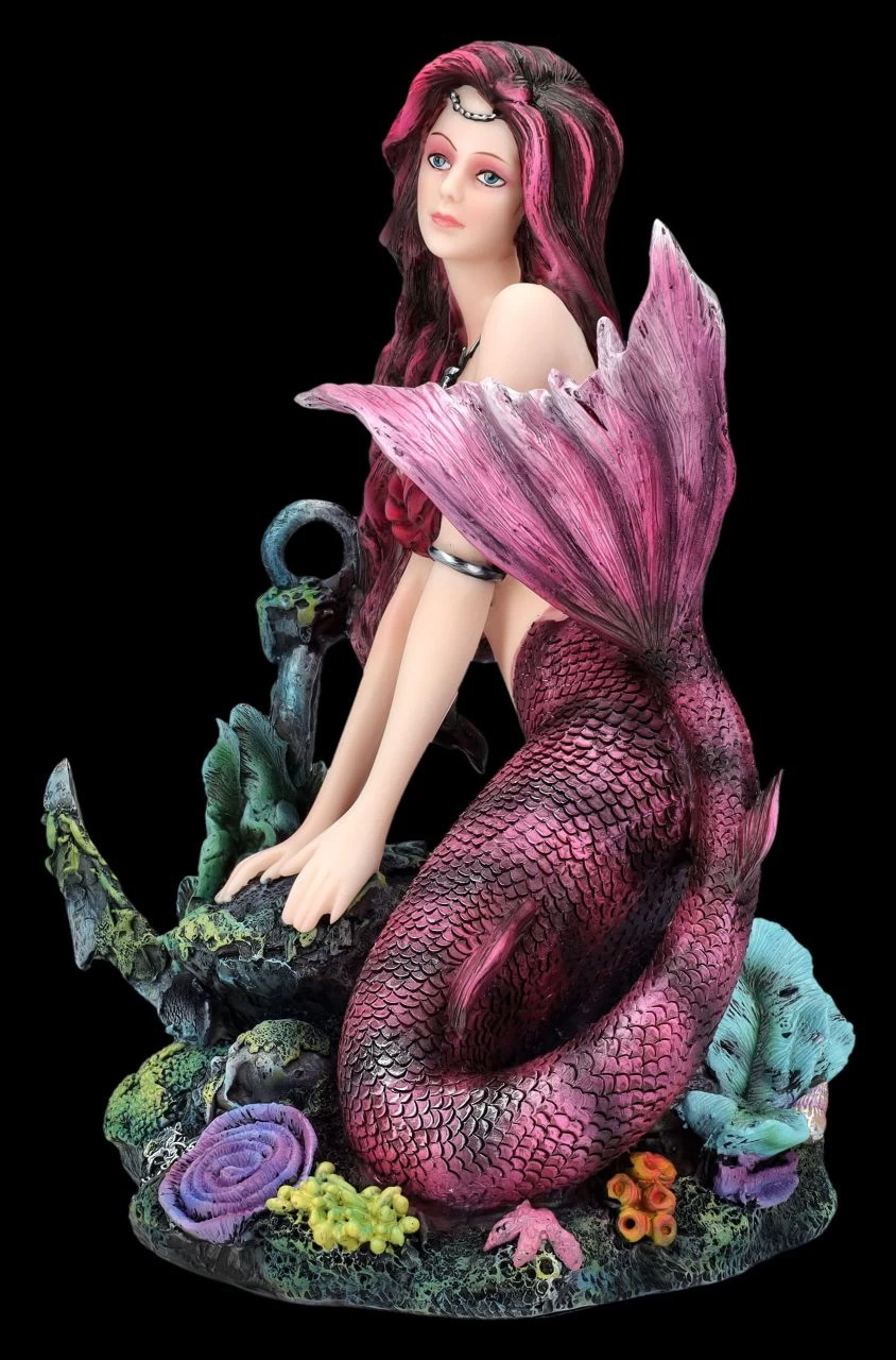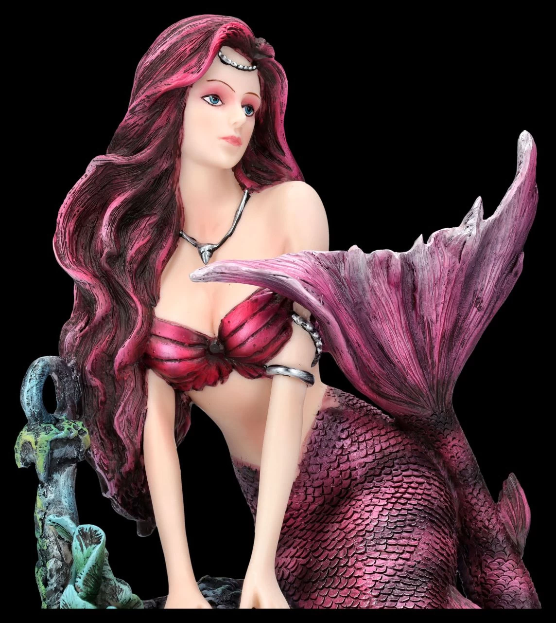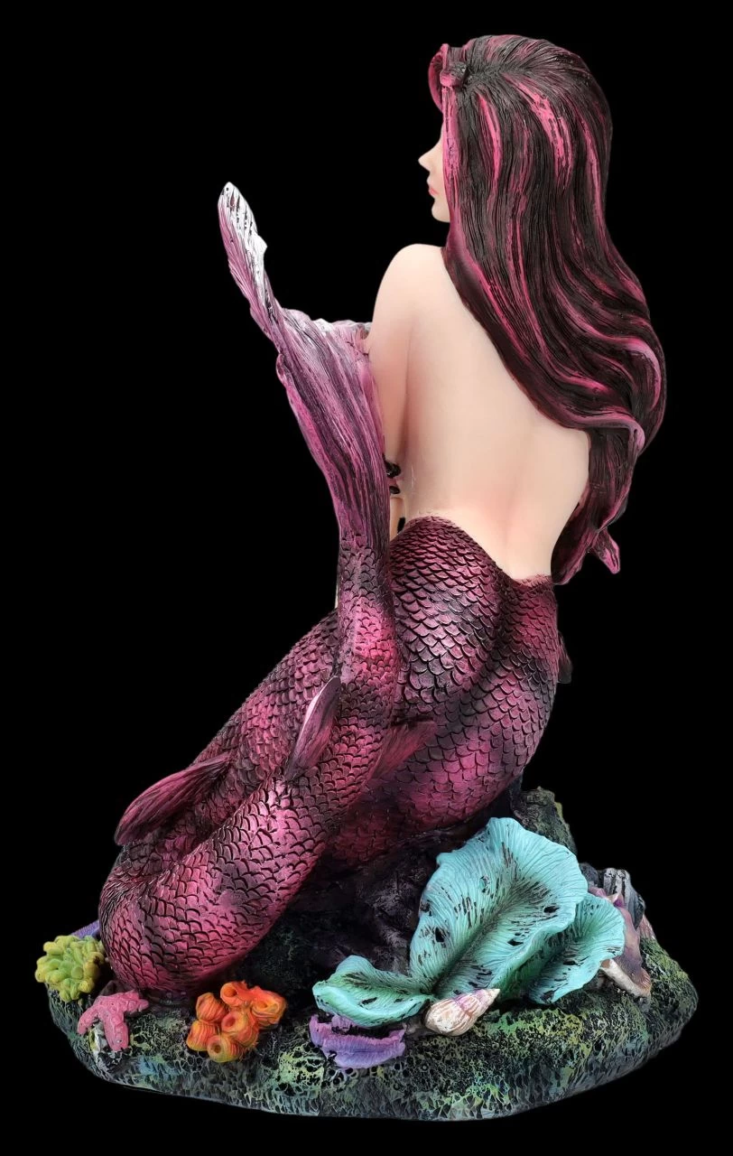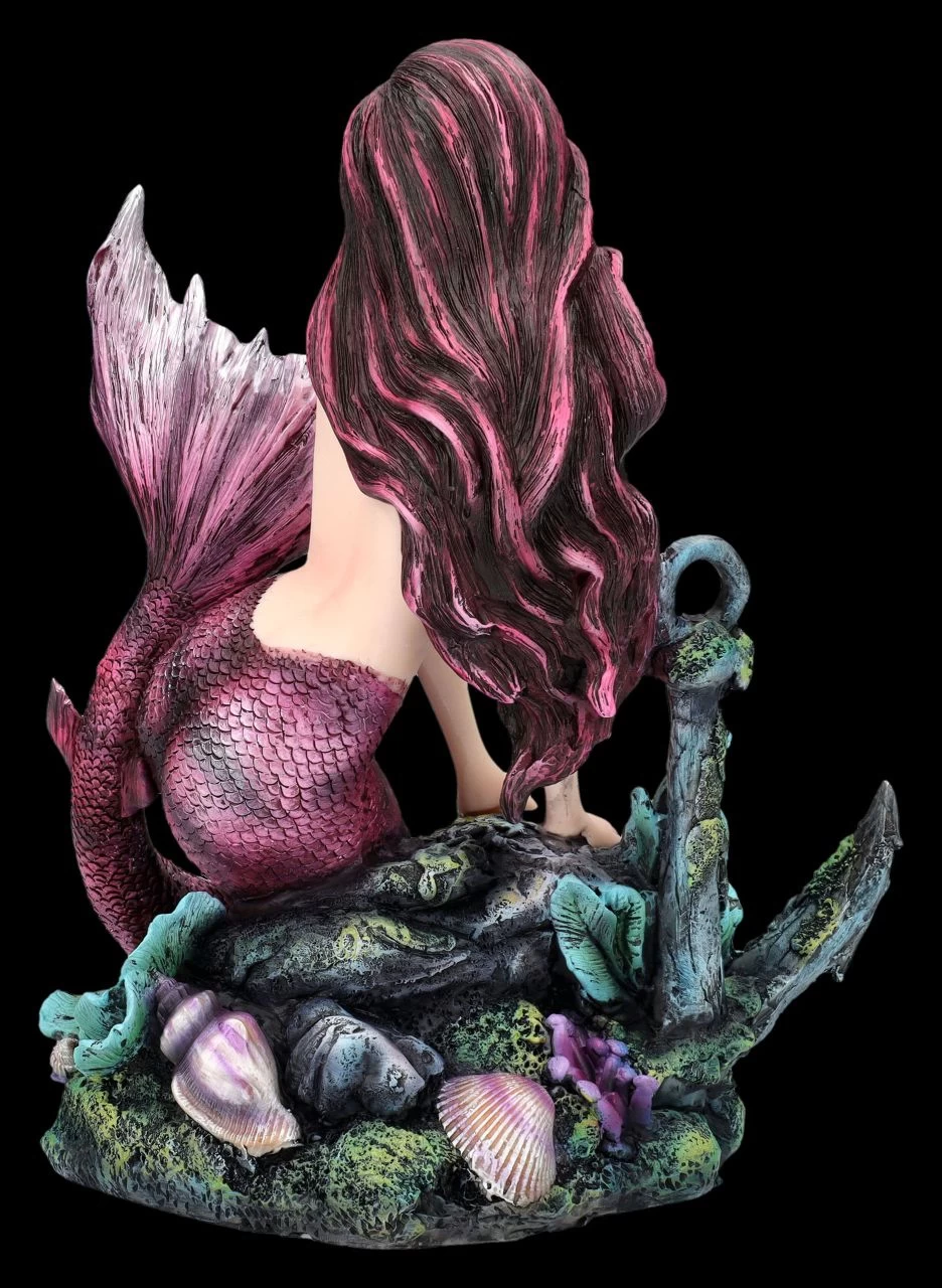 Kein Wunder, dass Meerjungfrauen für den einen oder anderen Seemann gefährlich werden können. Denn wer der wunderschönen Morana begegnet, fühlt sich vielleicht in Versuchung, ihr auf den Meeresgrund zu folgen. Wie es vermutlich auch dem Seemann ergangen ist, dessen Schädel neben einem losgerissenen Anker auf dem Grund des Meeres liegt. Morana mit den langen roten Haaren, die sich auf dem Meeresgrund auf einen Felsen ausruht, sieht einfach bezaubernd aus. Die 20 cm hohe, 13,5 cm breite und 12 cm tiefe Meerjungfrauen-Figur ist aus hochwertigem Kunststein (Polyresin) und wurde liebevoll von Hand bemalt. Im Bad oder auch zwischen den Pflanzen auf der Blumenbank wird die schöne Morana auf dem Meeresgrund garantiert zum sofortigen Blickfang und ist damit für alle, die das Meer und seine mystischen Bewohner lieben, auch ein perfektes Geschenk.