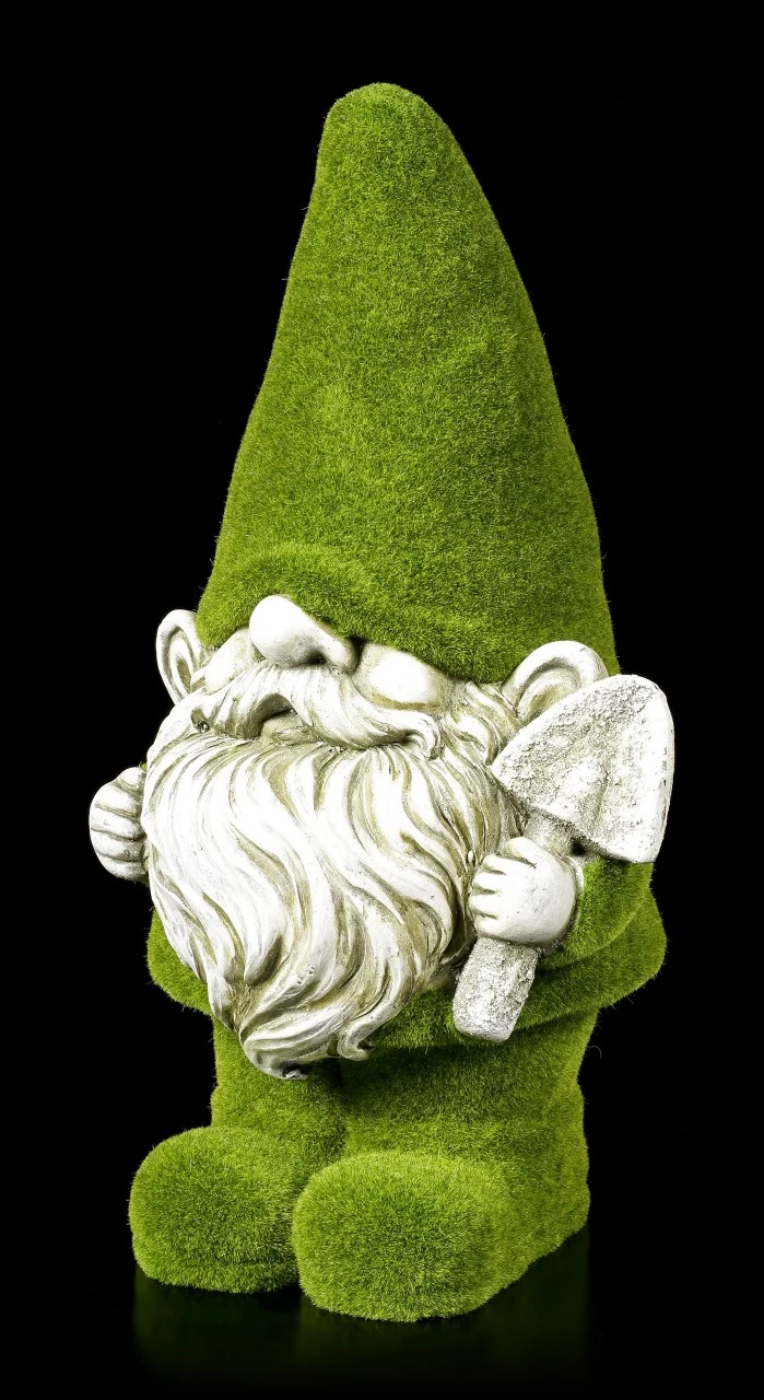 Tief im Wald hausen die Waldzwerge. Sie leben schon so lange im Verborgenen, dass sie gelernt haben sich perfekt zu tarnen. Dieser kleine lustige Geselle mit Schaufel sucht ein neues zu Hause, in dem er sich wohlfühlen kann. Wollen Sie dem moosbedeckten Zwerg aus handbemaltem Kunststein (Polyresin) und Filz, dies ermöglichen?