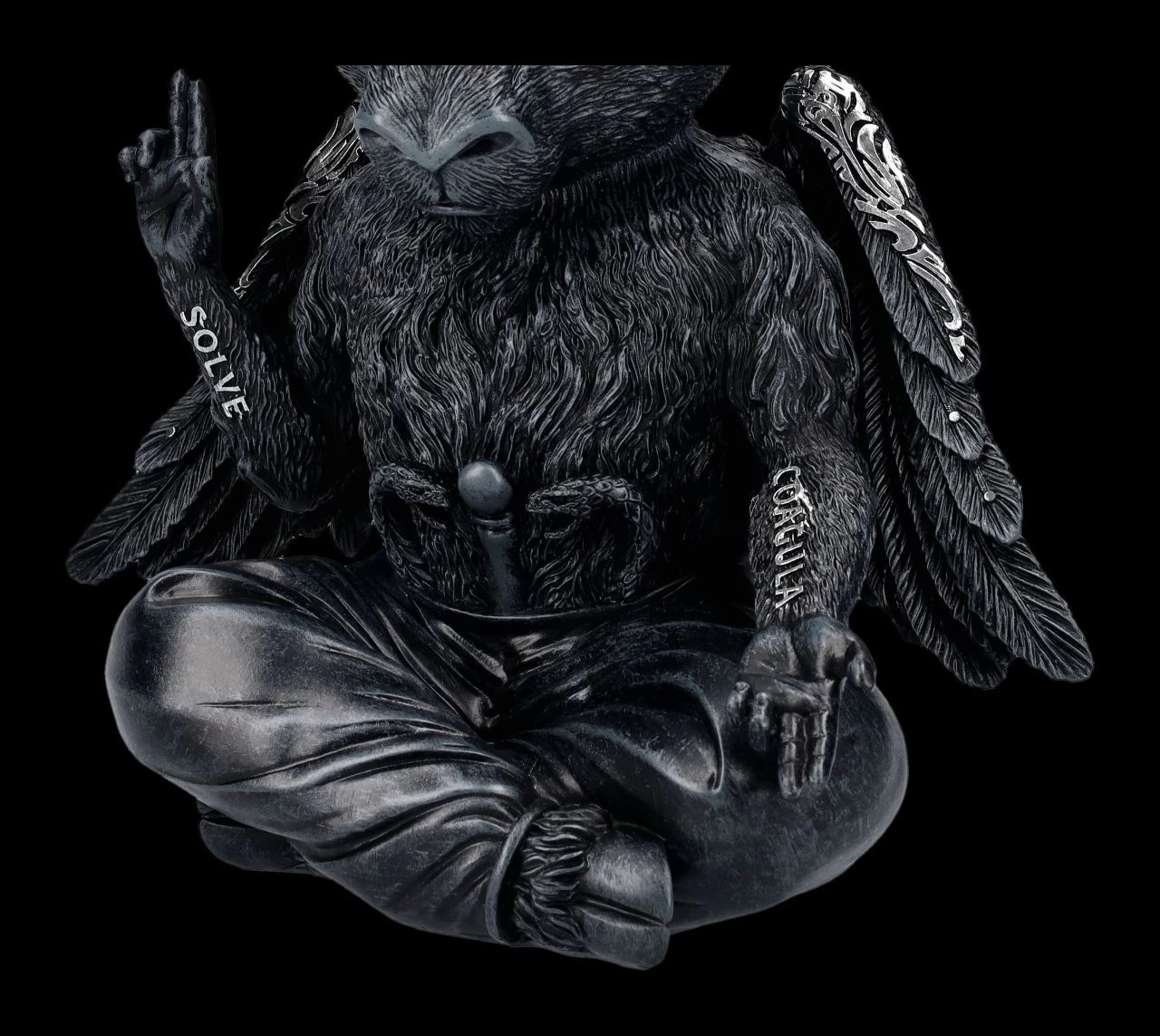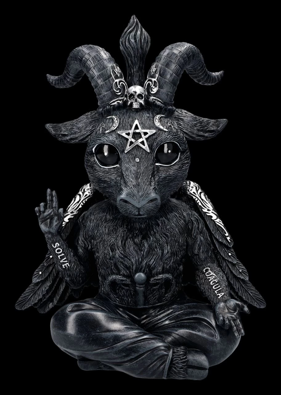 Sammler werden von dieser Baphomet Figur begeistert sein. Wie der große dunkle Lord, trägt auch Baphoboo die Wörter Solve (auflösen) und Coagula (zusammenfügen) auf den Armen Als Schmuck trägt er neben einem kleinen Schädel, den Dreifachmond, allerdings mit einem Pentagramm in der Mitte und auch die Ziegenhörner fehlen natürlich nicht Nur die grooßen leuchtenden Augen vermindern den finsteren Effekt. Die 31 cm hohe, 22 cm breite und 12,5 cm tiefe Kunststein (Polyresin)-Figur Baphoboo stammt aus der Serie Cult Cuties von Nemesis Now. Mit silberfarbenen Akzenten wurde sie sorgfältig handbemalt. Baphoboo ist ein fantastisches Sammlerstück und damit auch ein perfektes Geschenk für Cult Cuties-Sammler und kommt inklusive eines schön bedruckten Geschenkkartons. Weitere kultige Cult Cuties findet ihr in unserem Shop.